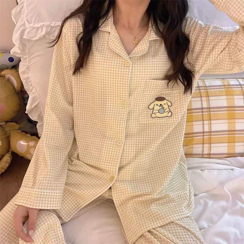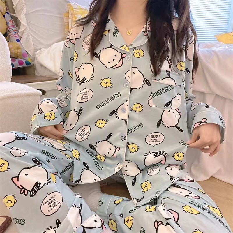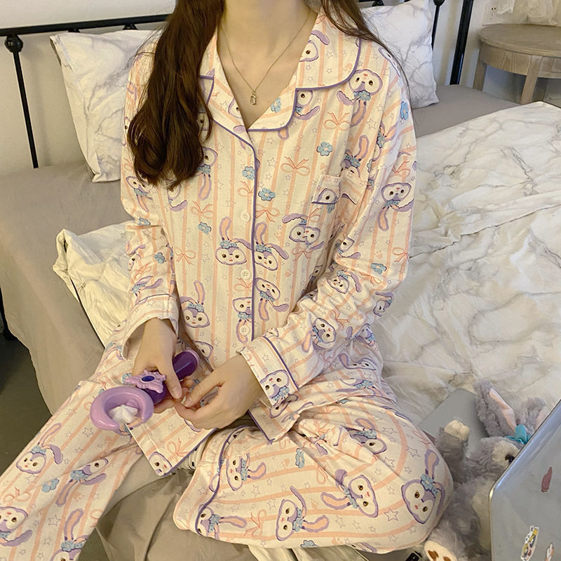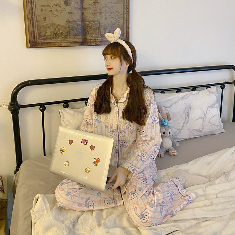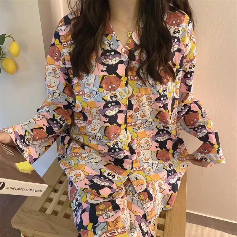 라이브 크로스 국경 대외 무역 봄과 가을 옷깃 오픈 버튼 긴 소매 잠옷 여성 카디건 바지 패션 만화 가정 의류 세트스토어 가기