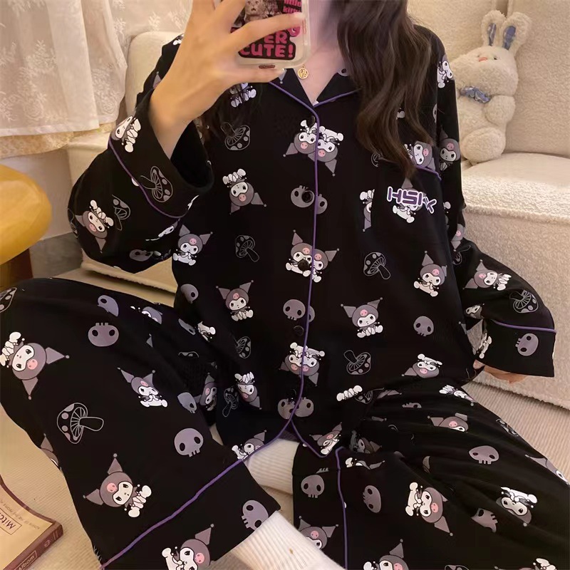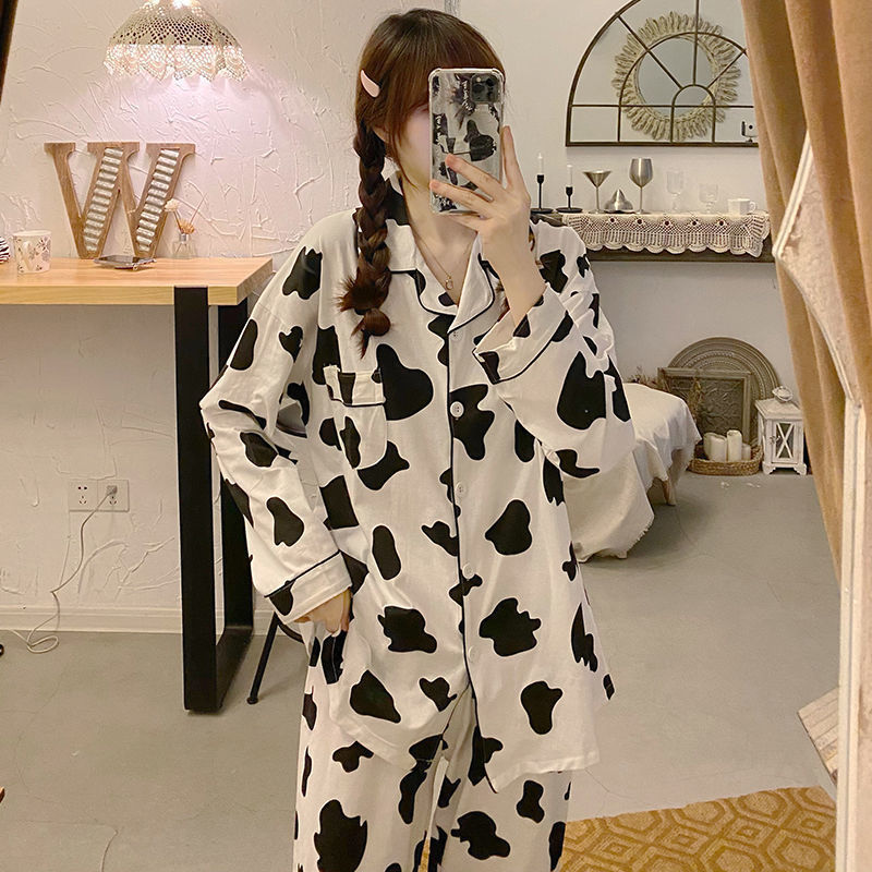 라이브 크로스 국경 대외 무역 봄과 가을 옷깃 오픈 버튼 긴 소매 잠옷 여성 카디건 바지 패션 만화 가정 의류 세트