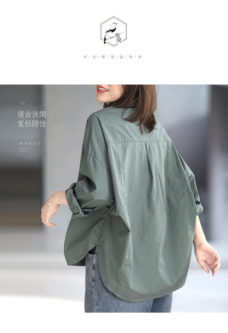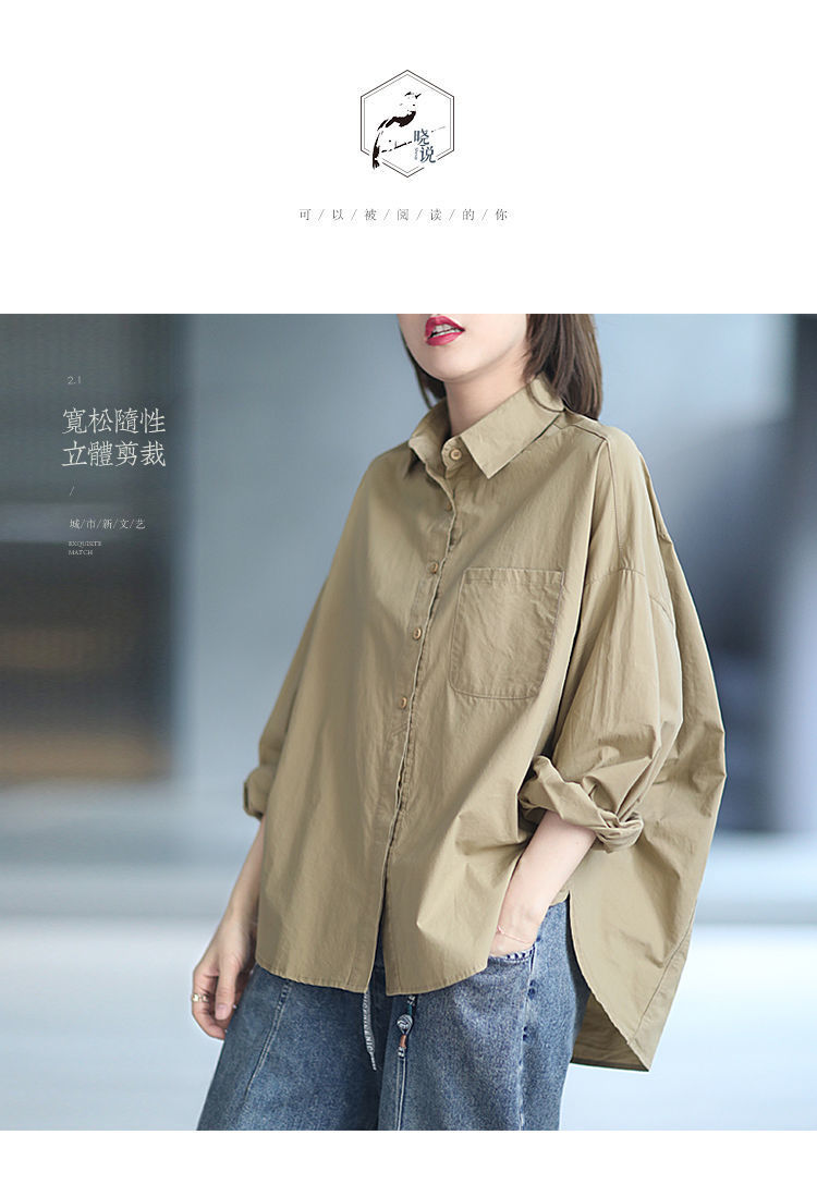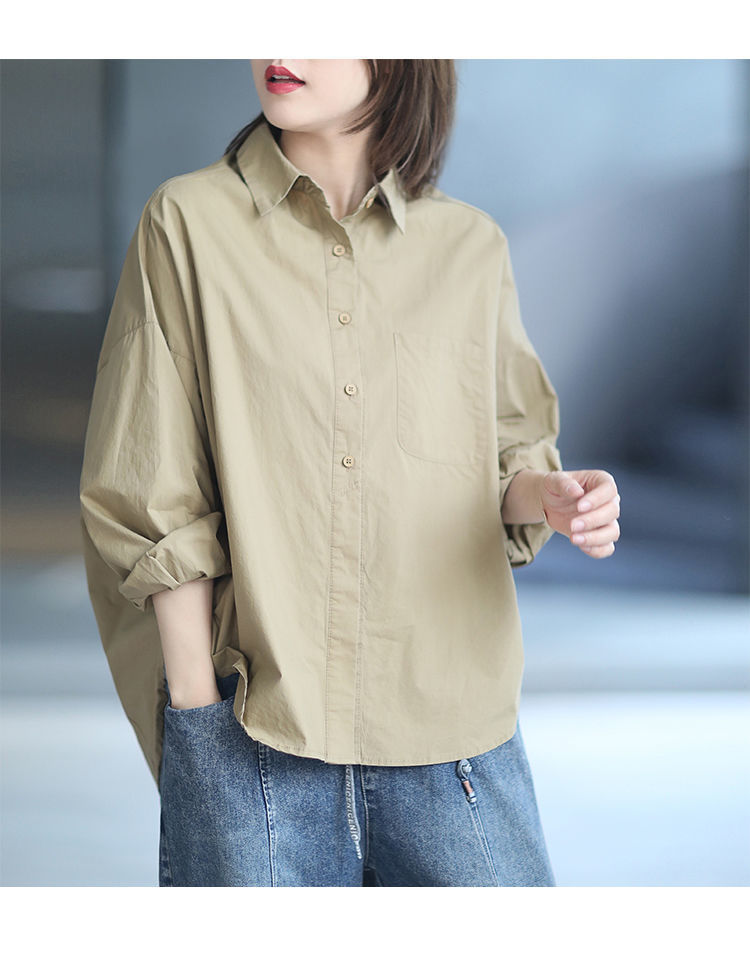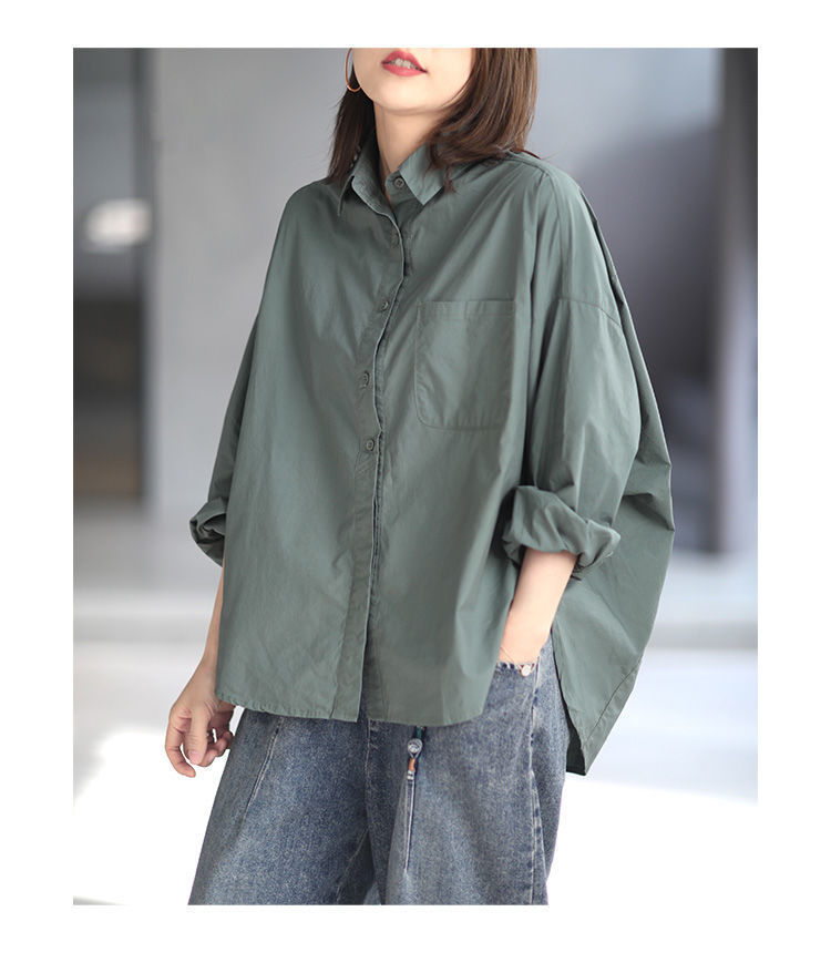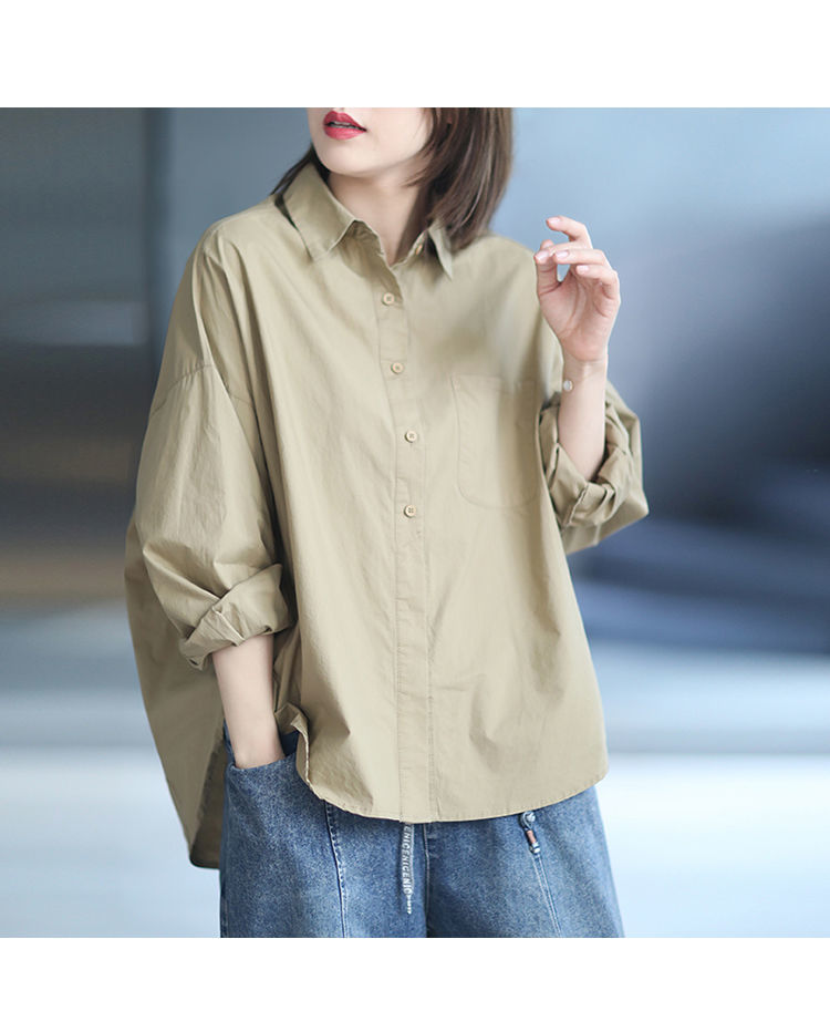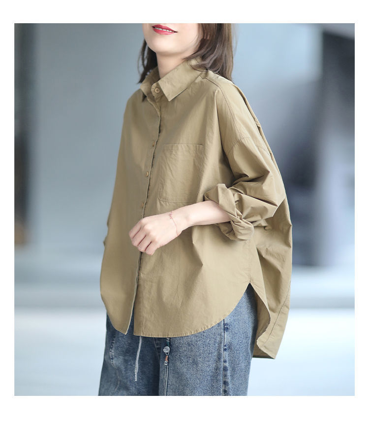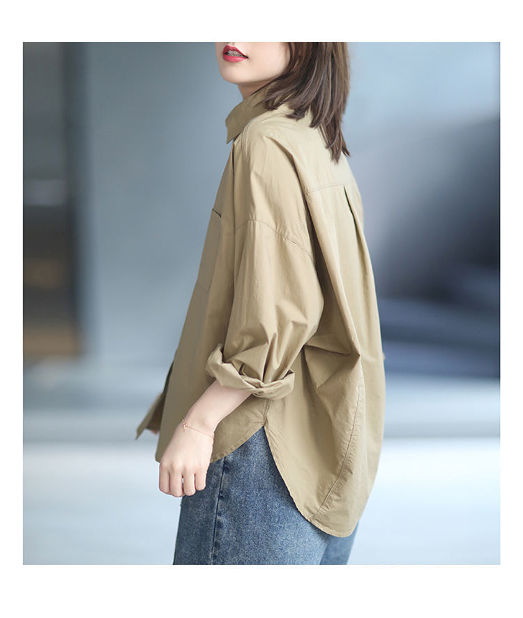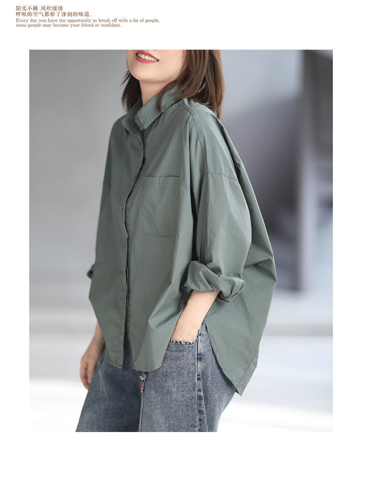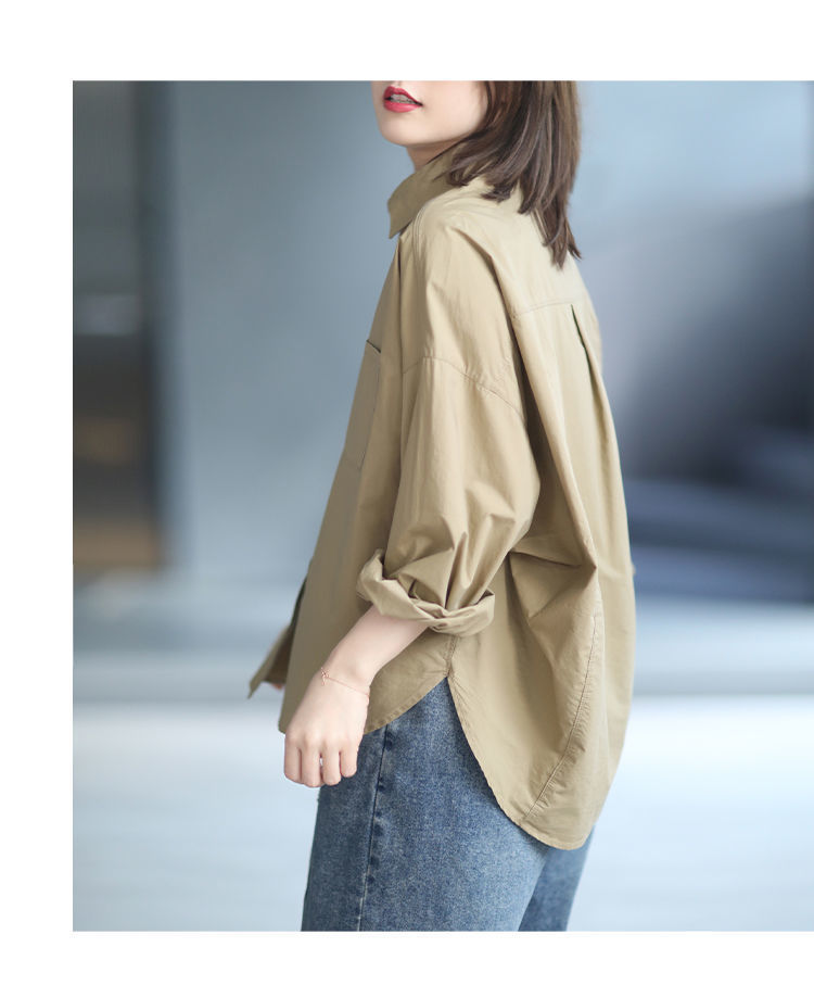 면 루즈 캐주얼 게으른 스타일 입체 컷 솔리드 컬러 캐주얼 여성 셔츠 여성 긴팔 2025 봄 탑스토어 가기