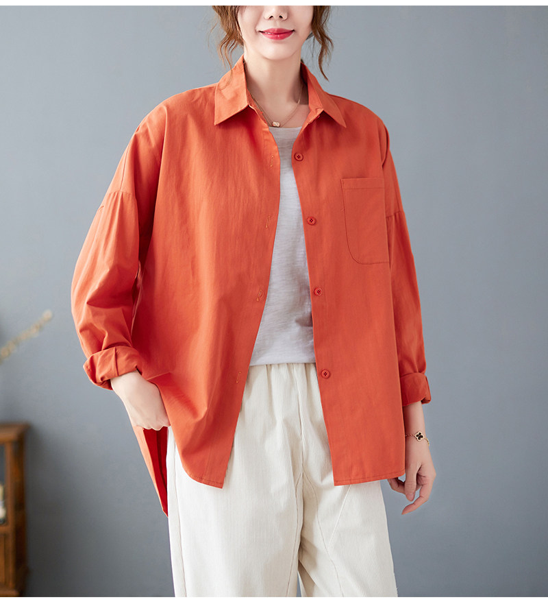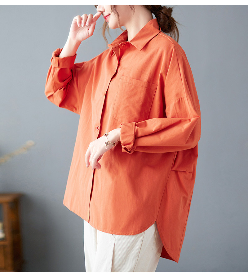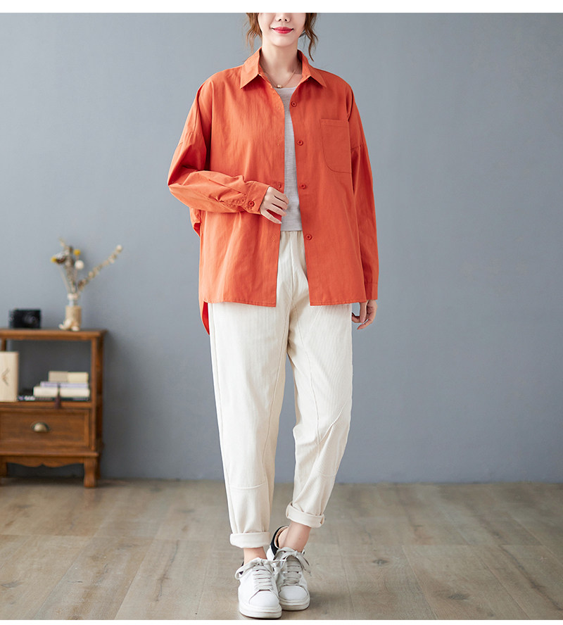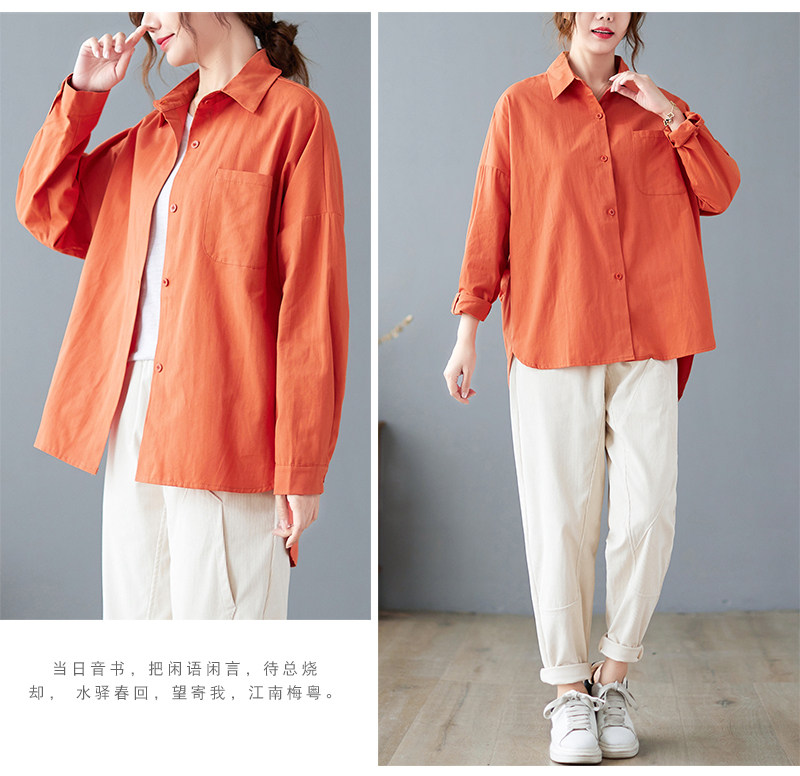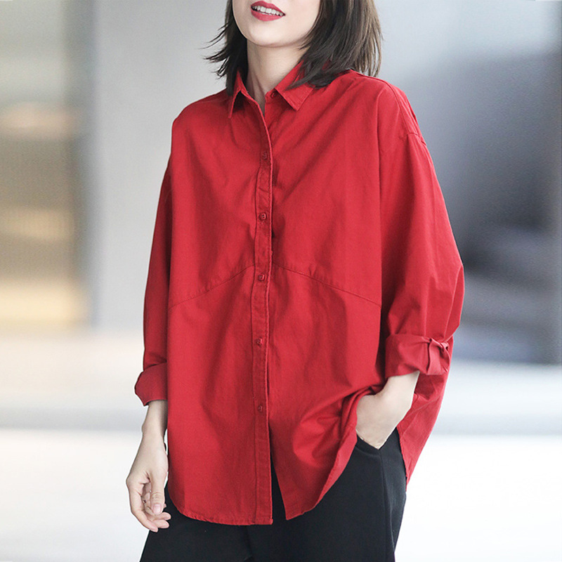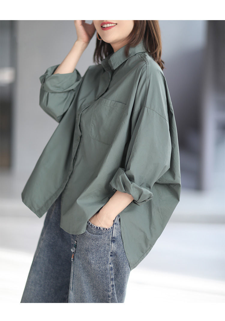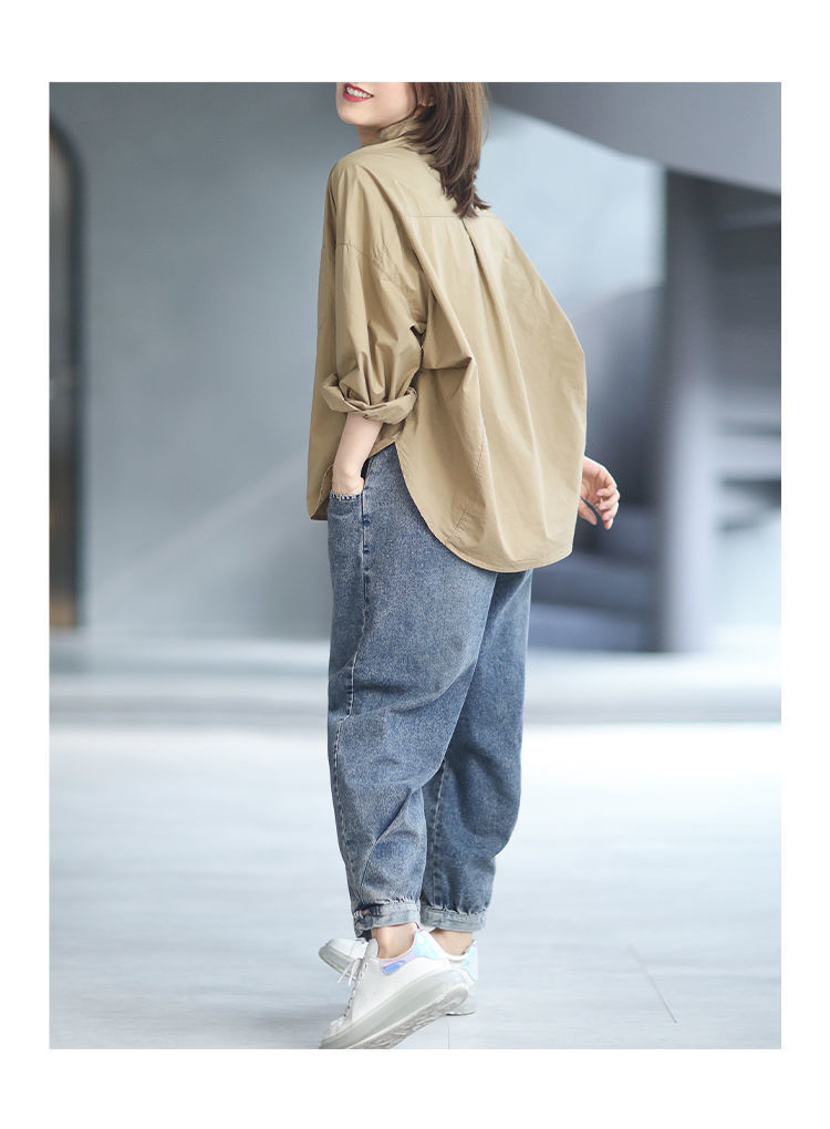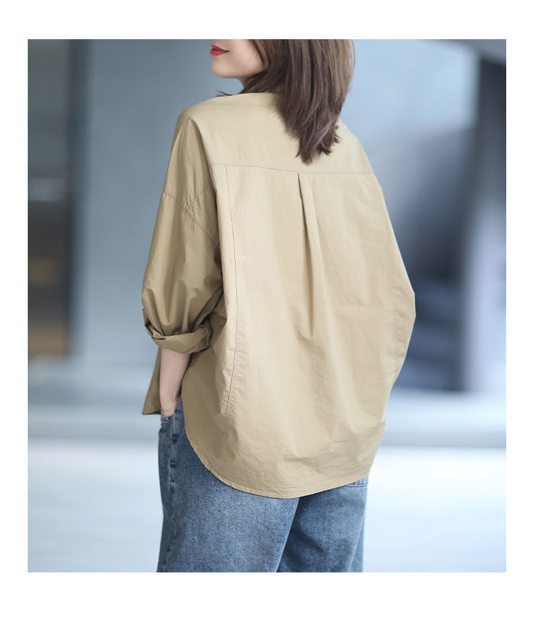 면 루즈 캐주얼 게으른 스타일 입체 컷 솔리드 컬러 캐주얼 여성 셔츠 여성 긴팔 2025 봄 탑스토어 가기