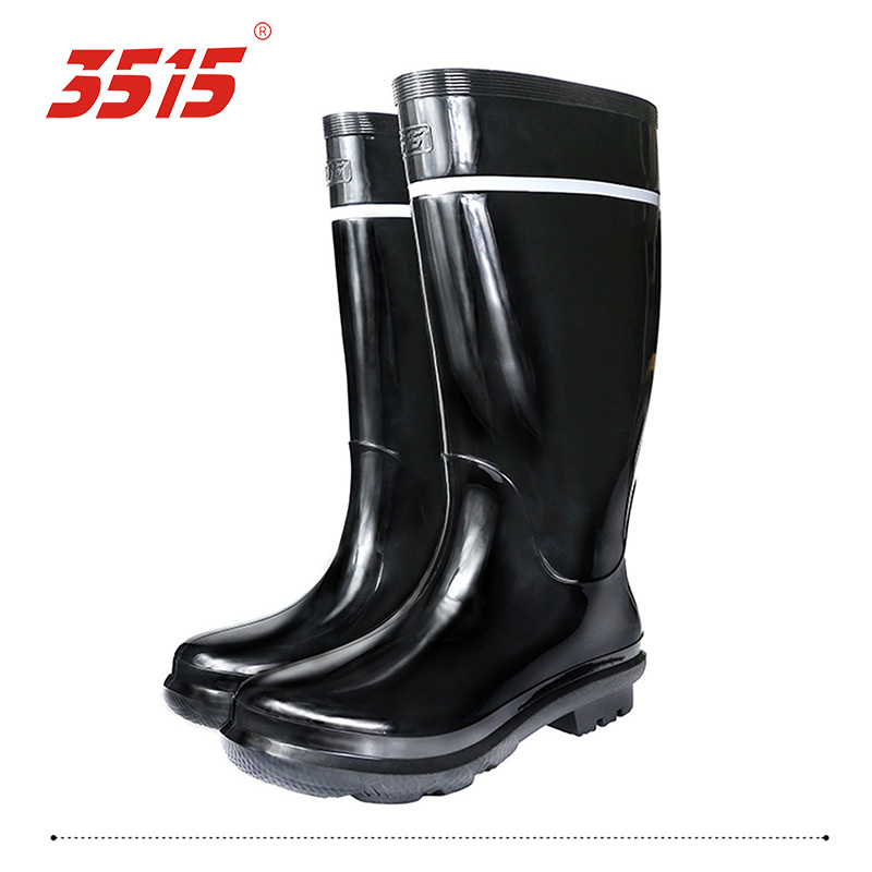 Jihua 3515 높은 튜브 PVC 고무 밑창 재고 둥근 머리 남자 방수 사출 검은 레인 부츠
