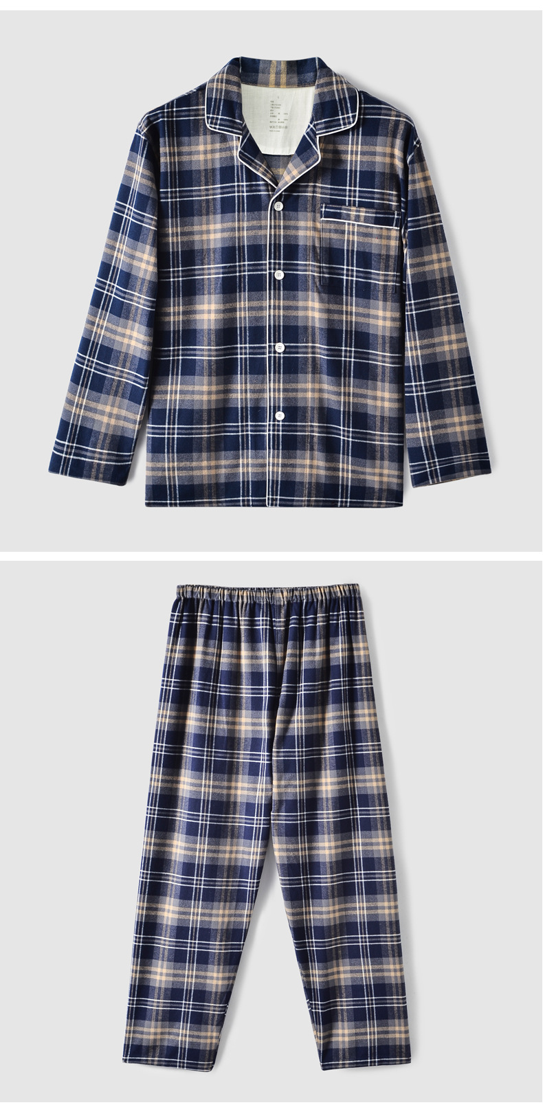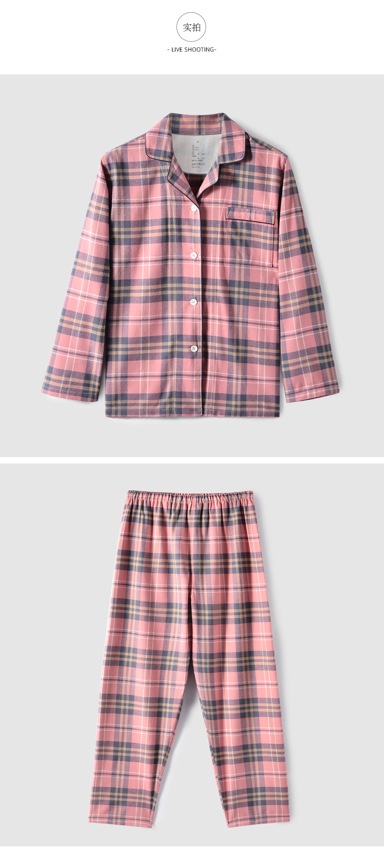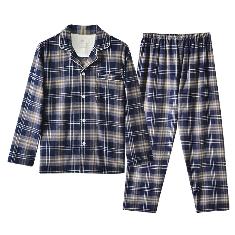 2025 가을 겨울 이중사 순면 플란넬 잠옷 남녀 커플용 기모 플란넬 홈웨어 체크무늬 세트