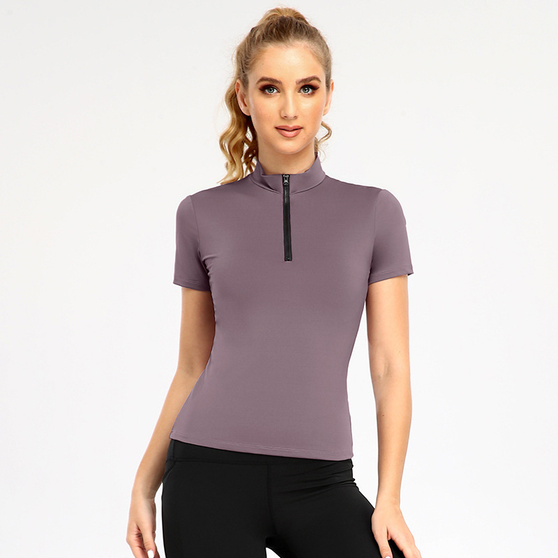 반지퍼 스탠드 칼라 타이트 피트니스웨어 스포츠 상의 재킷 러닝 여성용 반팔 요가복 WA96 통기성 속건