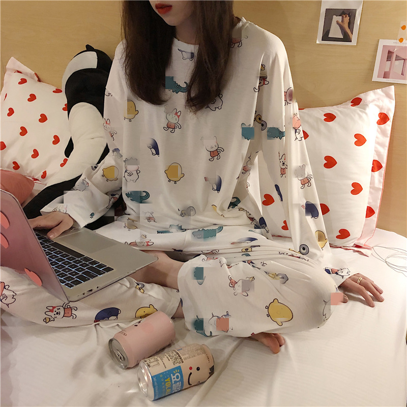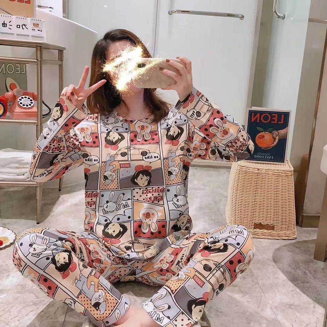 긴팔 잠옷 여성 가을과 겨울 봄과 가을 한국식 새로운 플러스 사이즈 숙녀 가정 옷 귀여운 만화 잠옷 세트 크로스 보더스토어 가기