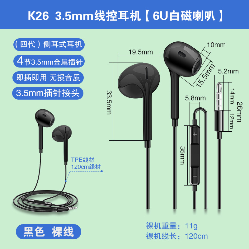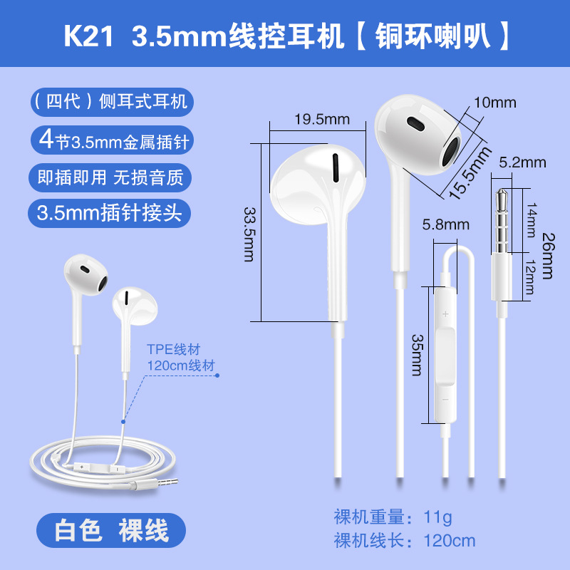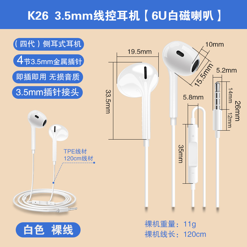 4세대 3.5mm 원형 구멍 유선 이어폰은 애플, 오포, 화웨이 휴대폰 및 컴퓨터용 인이어형 휴대폰 이어폰으로 적합합니다.스토어 가기