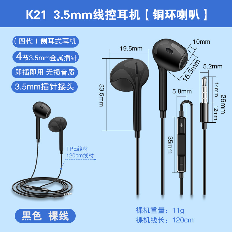 • 검정색 [3.5mm] 구리 링 스피커 K21 벌크선