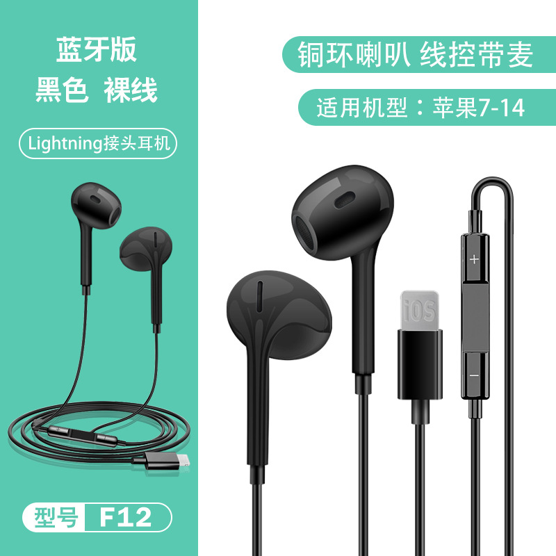 • F12 구리 링 경적 블랙 [애플 플랫 입 블루투스 에디션] 베어 와이어