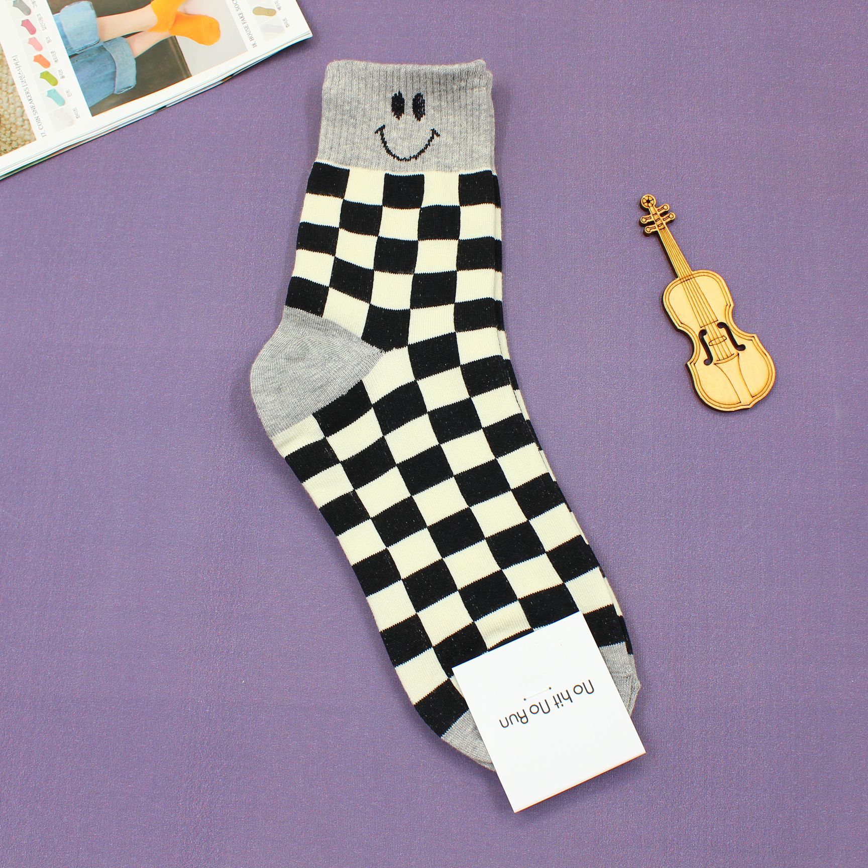 한국 가을과 겨울 그물 적외선 착용 색상 바둑판 양말 여성 스포츠 스퀘어 격자 무늬 튜브 양말 면화 도매스토어 가기