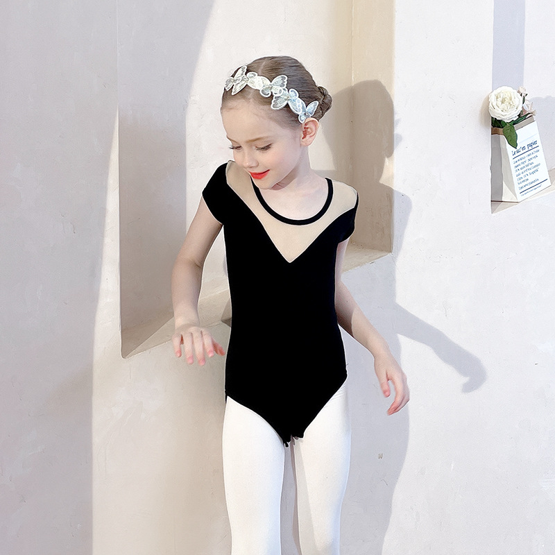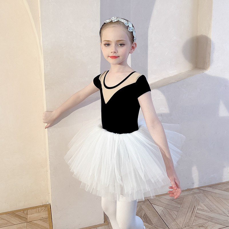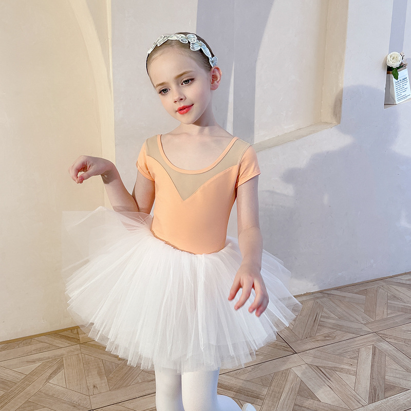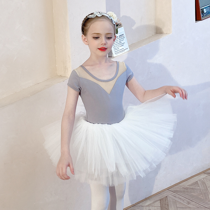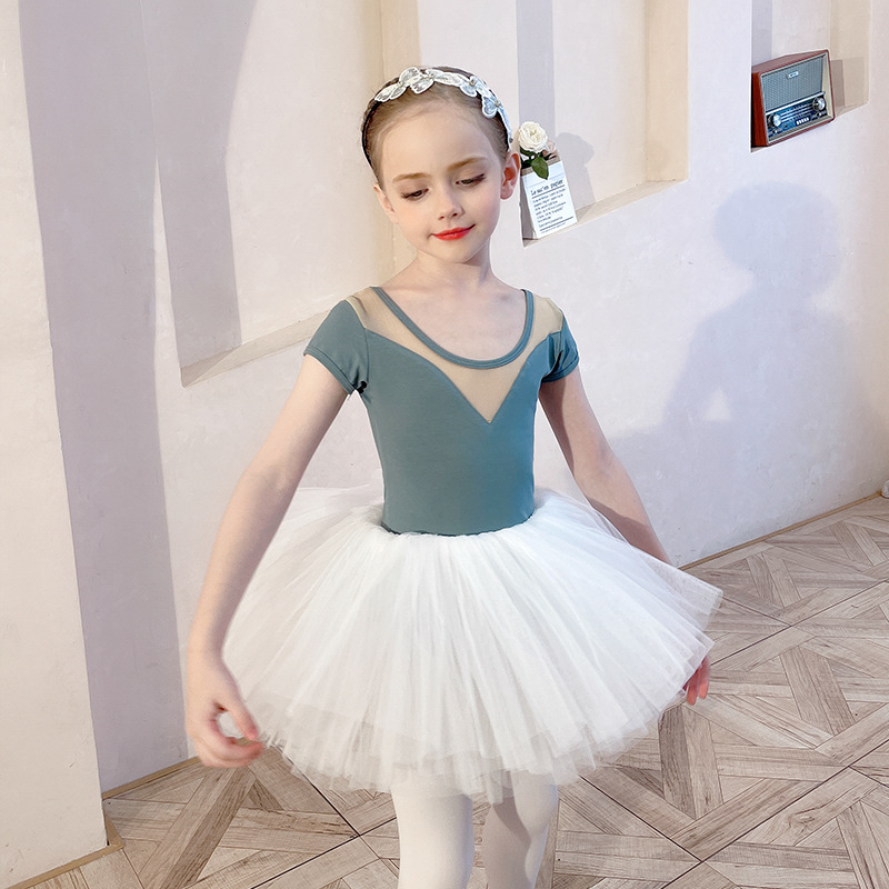아동용 댄스 의상, 여름 반팔 여아 연습복, 흰색 스커트, 거즈 스커트, 유아용 투투 스커트