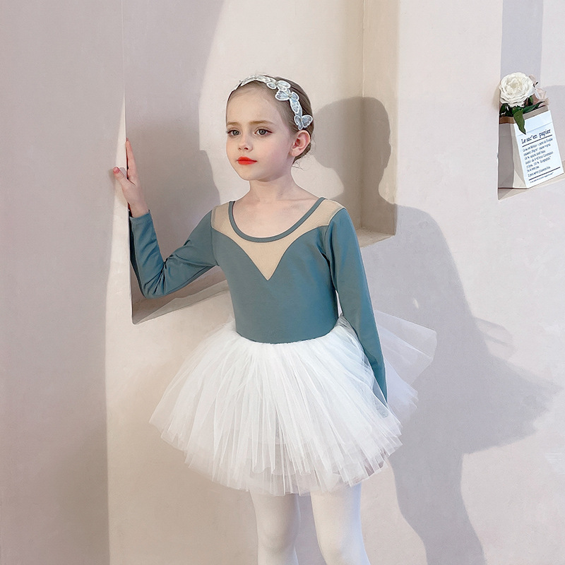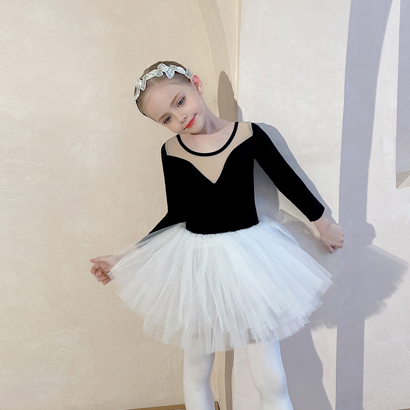 아동용 댄스 의상, 여름 반팔 여아 연습복, 흰색 스커트, 거즈 스커트, 유아용 투투 스커트스토어 가기