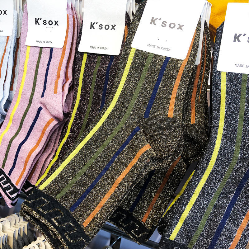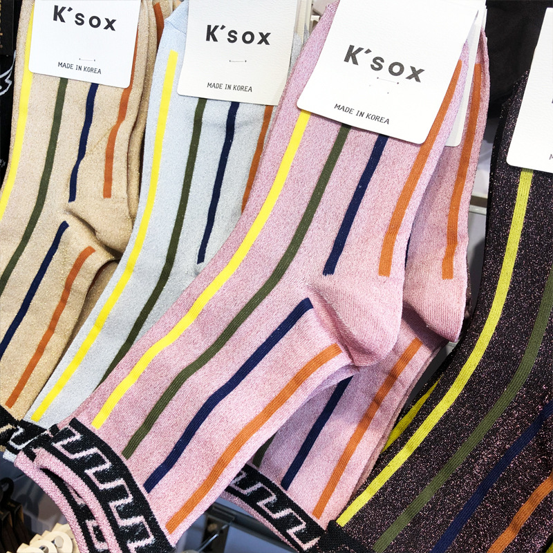 한국 수입 K'SOX 양말 실버 양파 밝은 실크 유행 여성 중장 양말 동대문 컬러 스트립 면 양말 여성용 양말스토어 가기