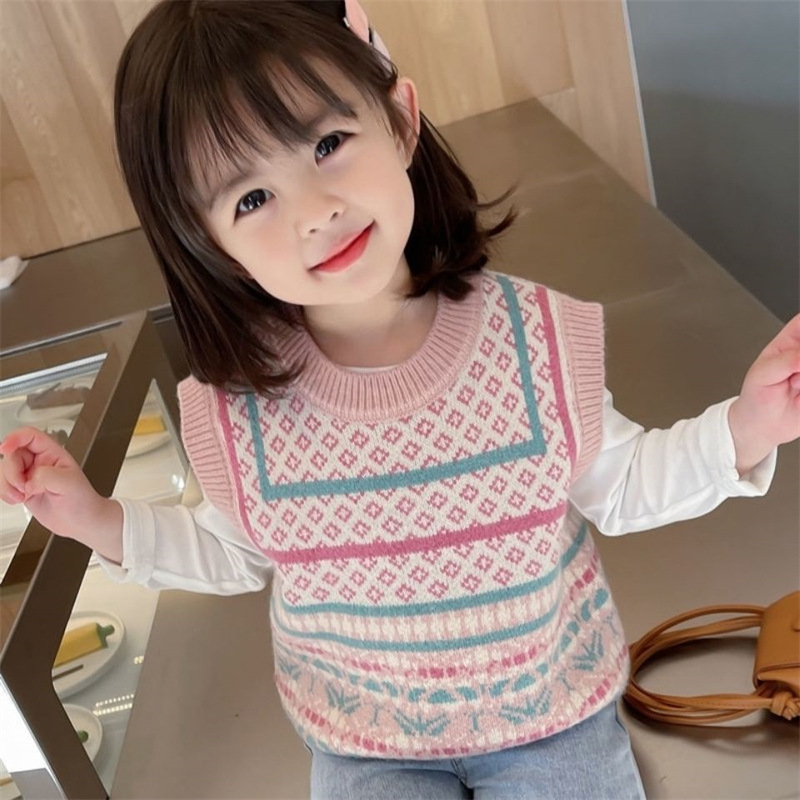 여아 니트 조끼 봄과 가을 얇은 조끼 겉옷 아기 한국 스타일 서양 아기 봄 스웨터 조끼 유행
