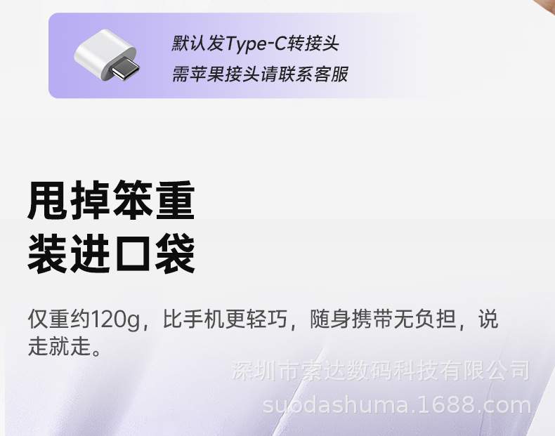 清单:说明书、收纳袋、机子、挂绳、电池、充电头、充电线
