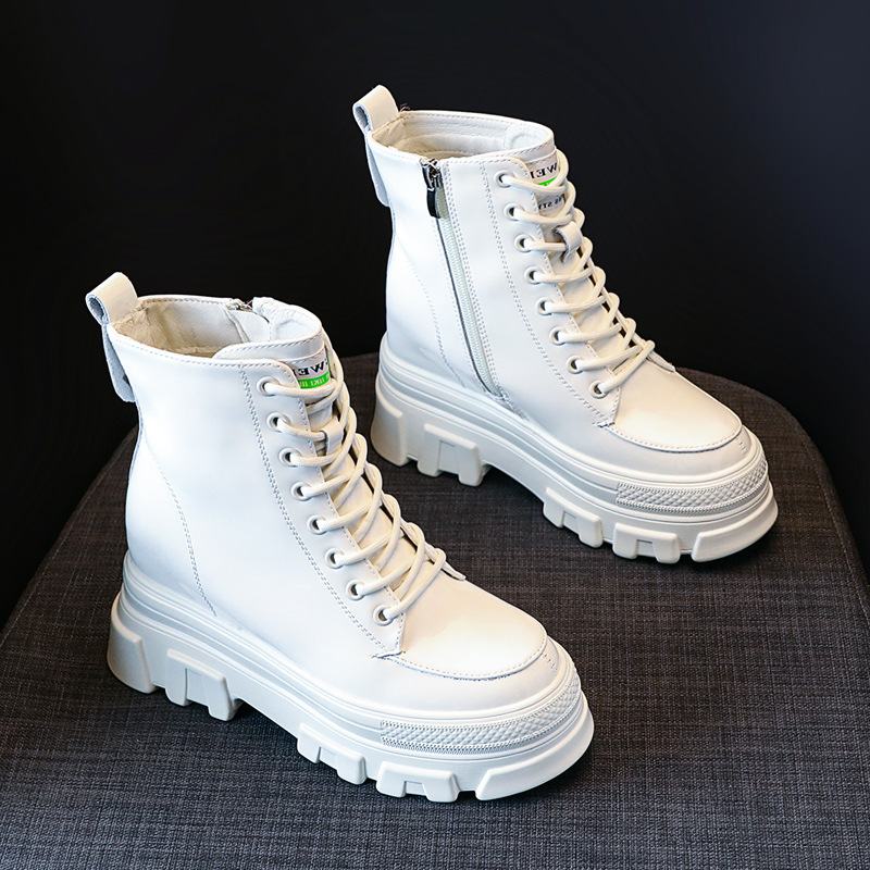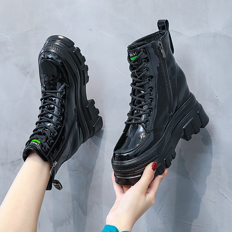 마틴 부츠 여성용 내부 강화 중간 배럴 2023 가을 새로운 두꺼운 바닥 에나멜 가죽 짧은 배럴 패션 부츠 영국 스타일 싱글 부츠스토어 가기