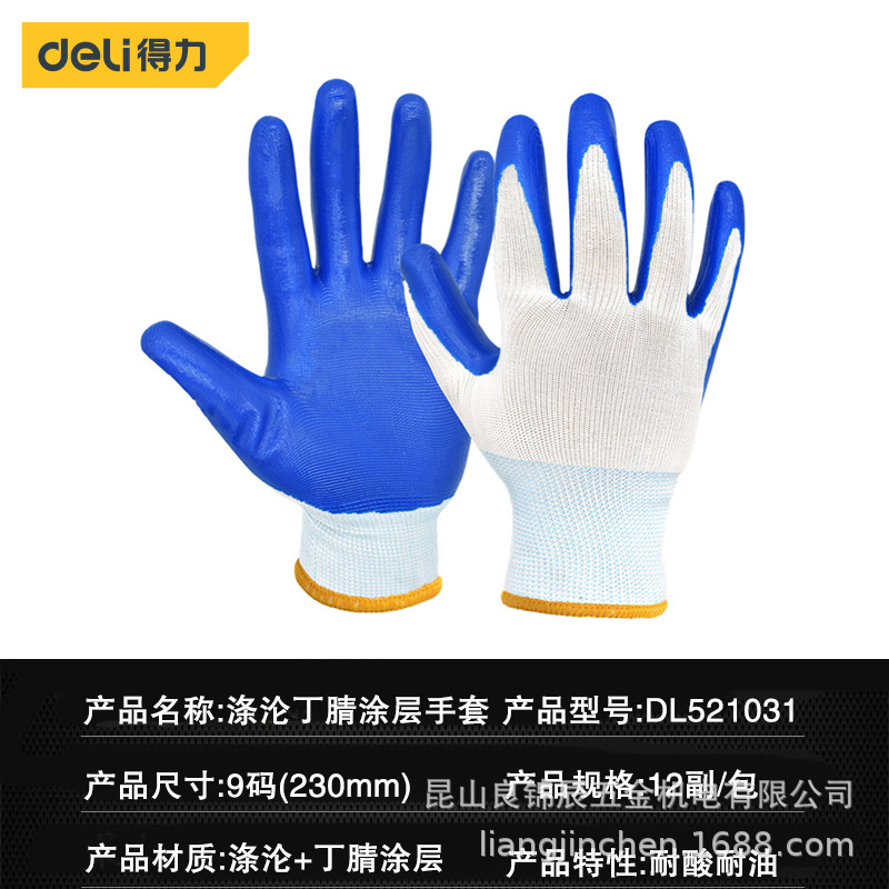 델리 도구 폴리에스터 니트릴 코팅 장갑 미끄럼 방지 암호화 접착제 건설 장갑 DL521031스토어 가기