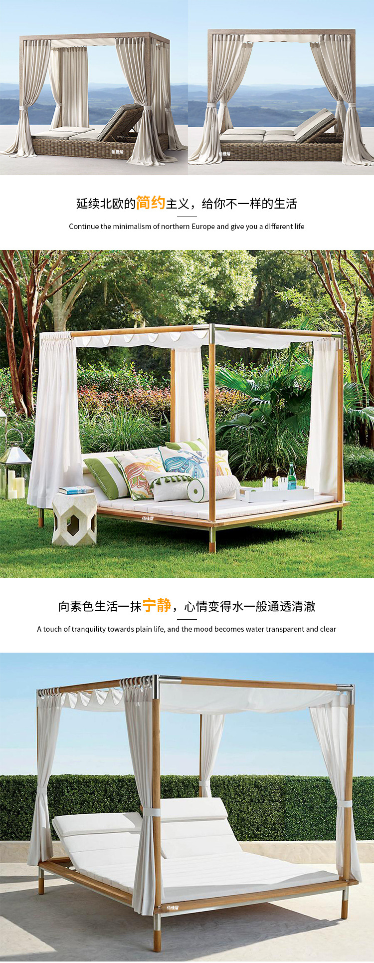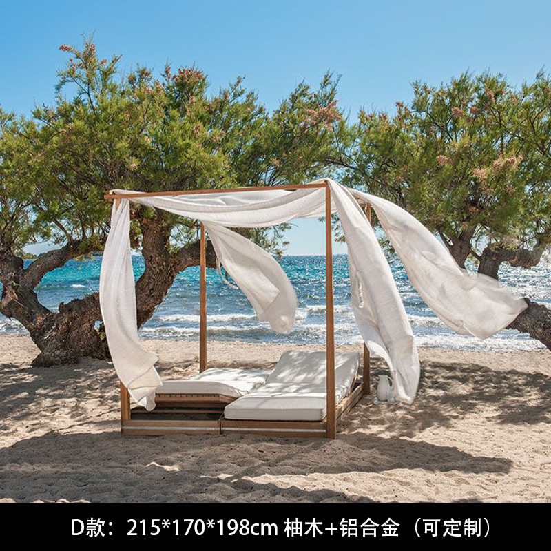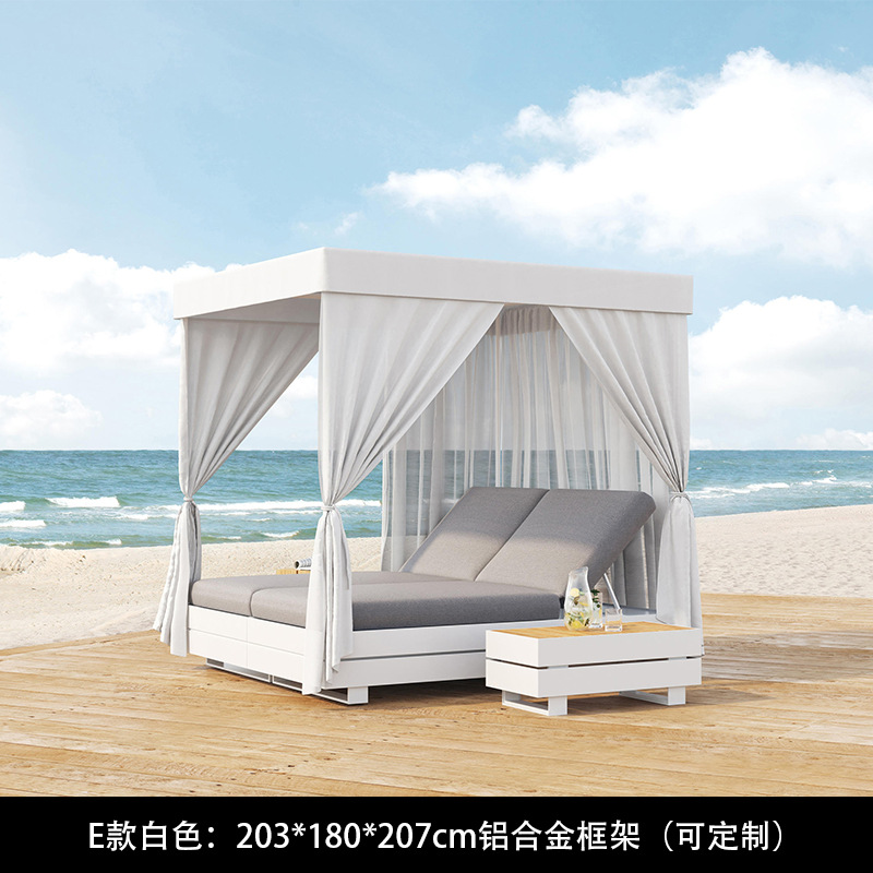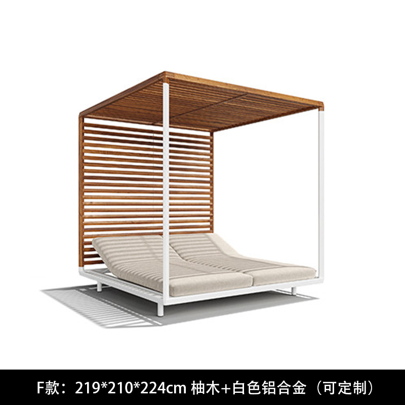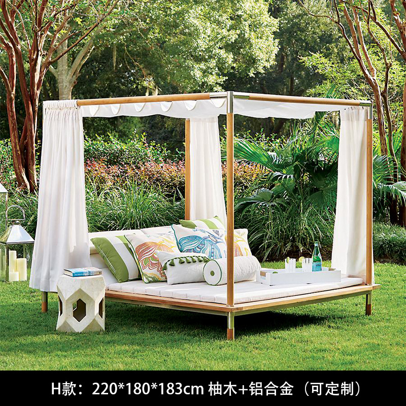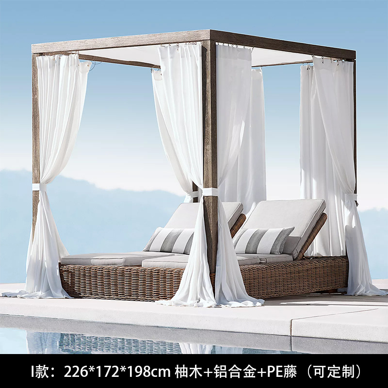 야외 북유럽 레저 누워 침대 소파 침대 등나무 야외 테라스 수영장 발코니 티크 알루미늄 합금스토어 가기
