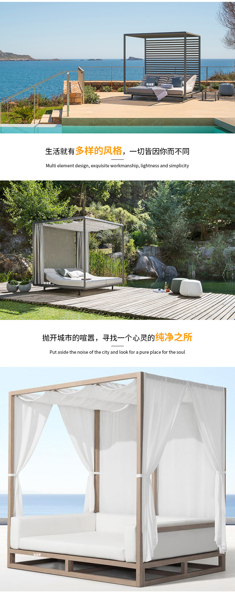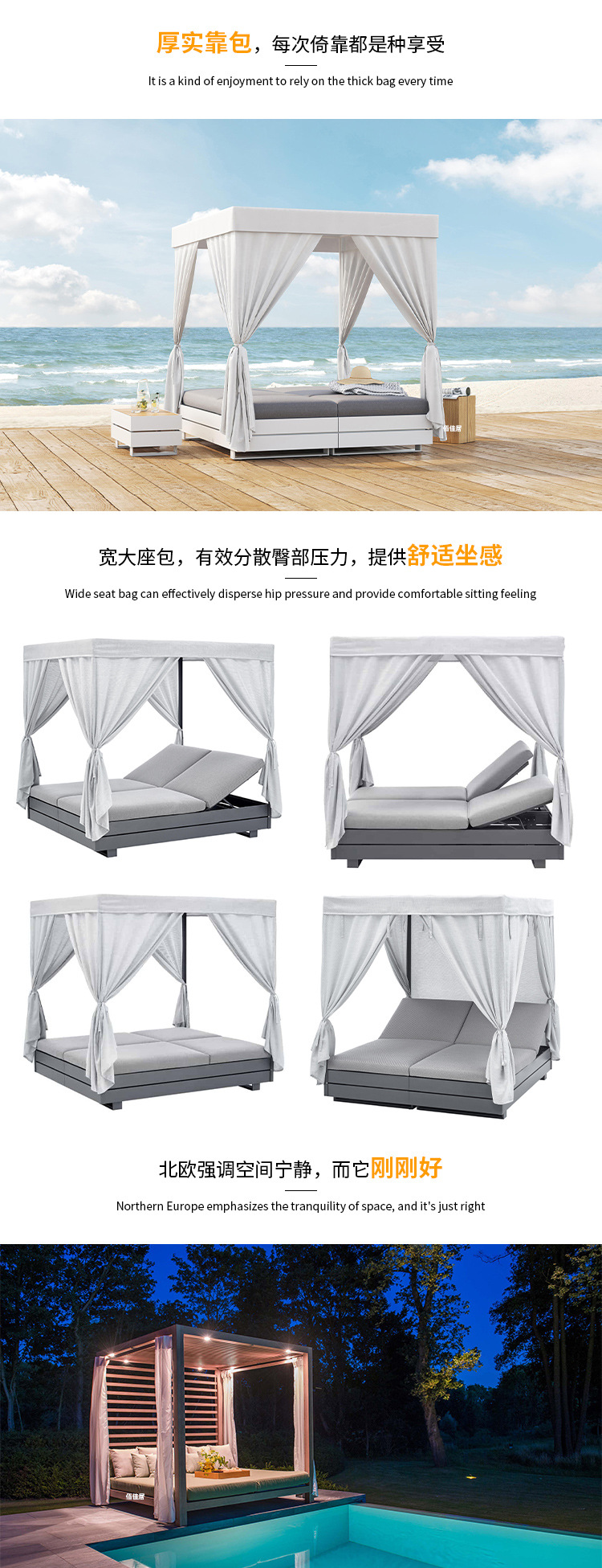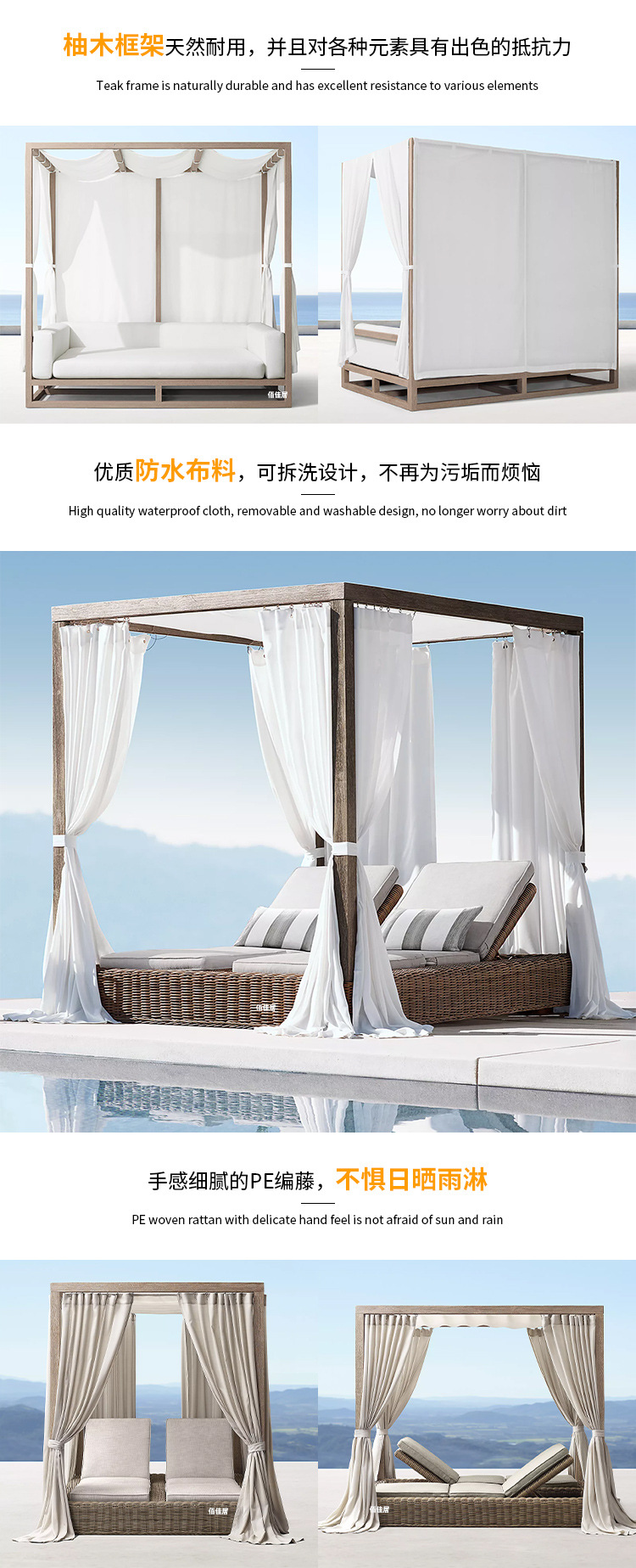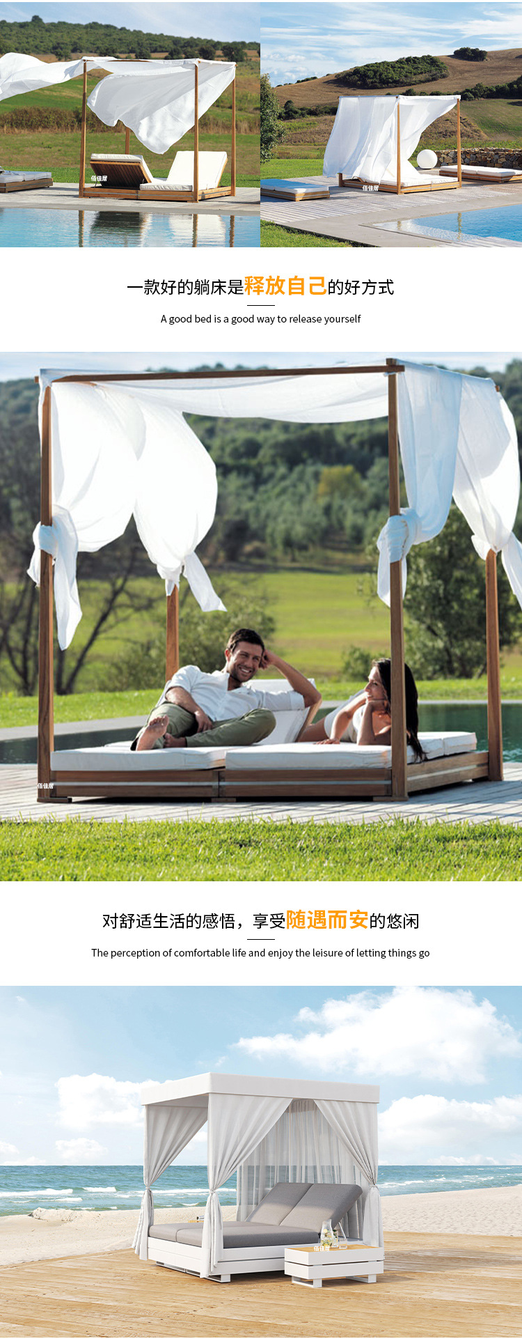 야외 북유럽 레저 누워 침대 소파 침대 등나무 야외 테라스 수영장 발코니 티크 알루미늄 합금스토어 가기