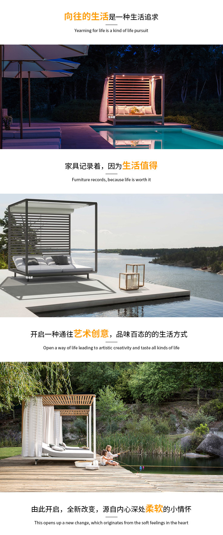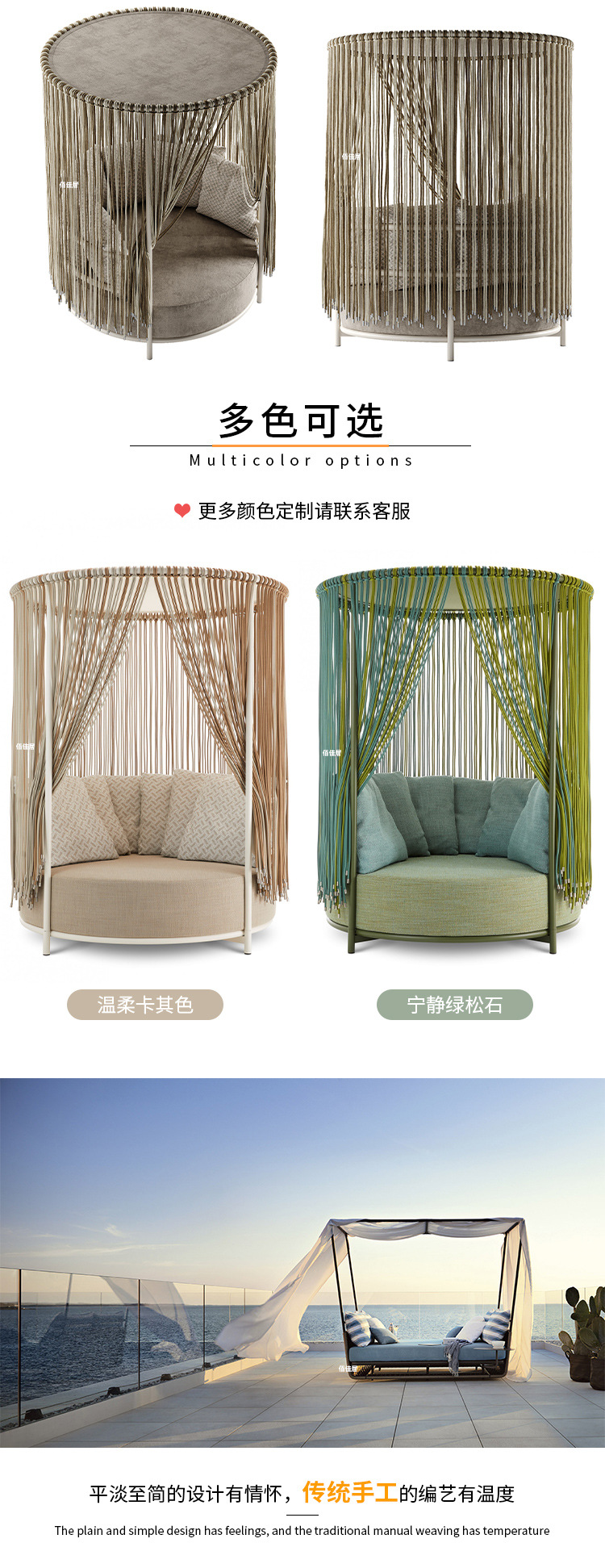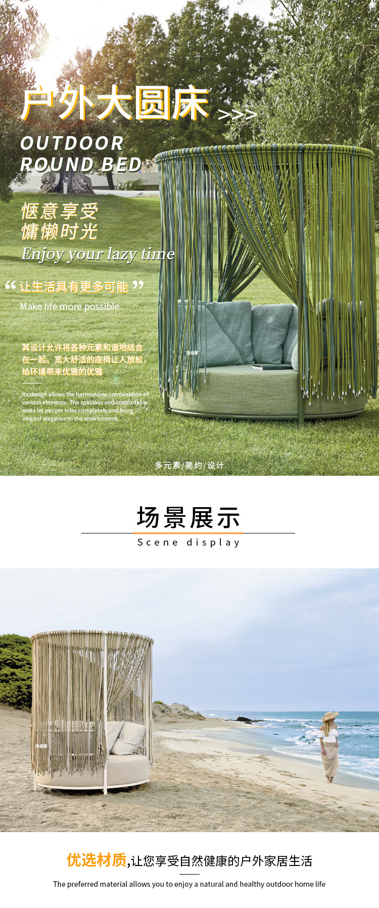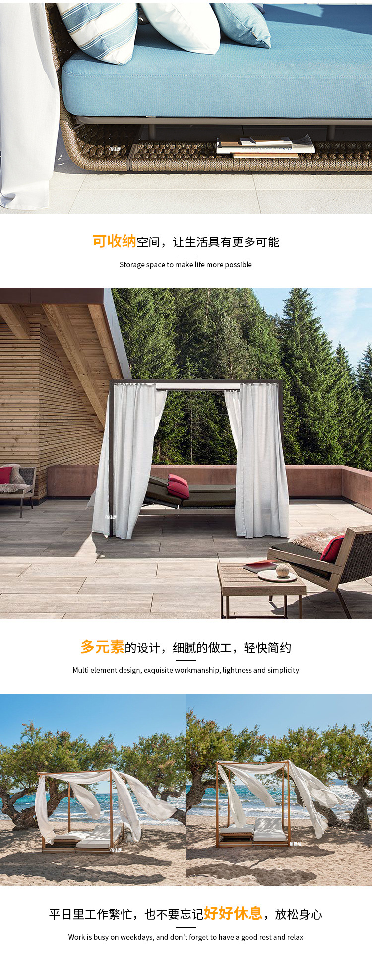 야외 북유럽 레저 누워 침대 소파 침대 등나무 야외 테라스 수영장 발코니 티크 알루미늄 합금스토어 가기