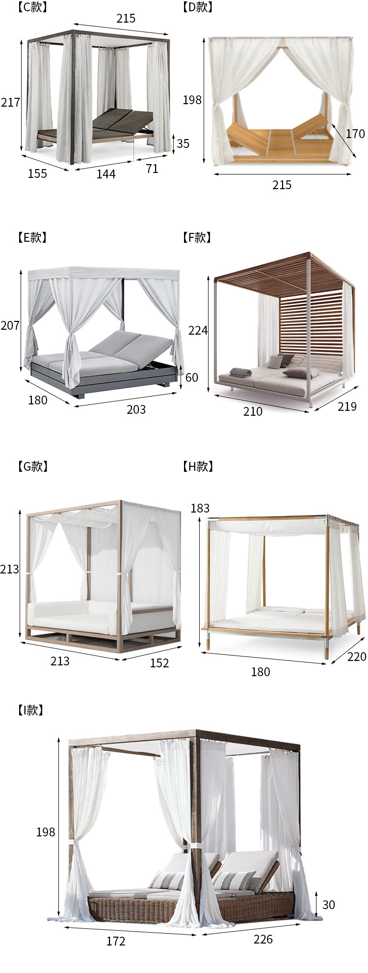 • F 219*210*224cm 티크 + 화이트 알루미늄