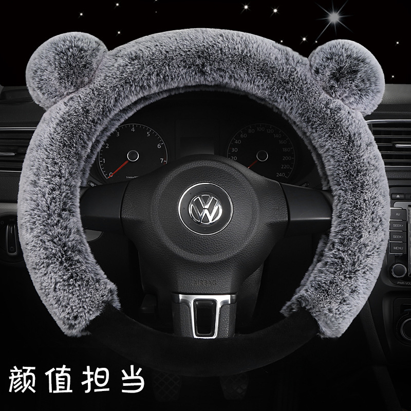카이아이 토끼귀 모양 플러시 스티어링 휠 커버, 새로운 모조 토끼털 겨울용 따뜻한 범용 핸들 커버, 여성용 자동차 용품스토어 가기