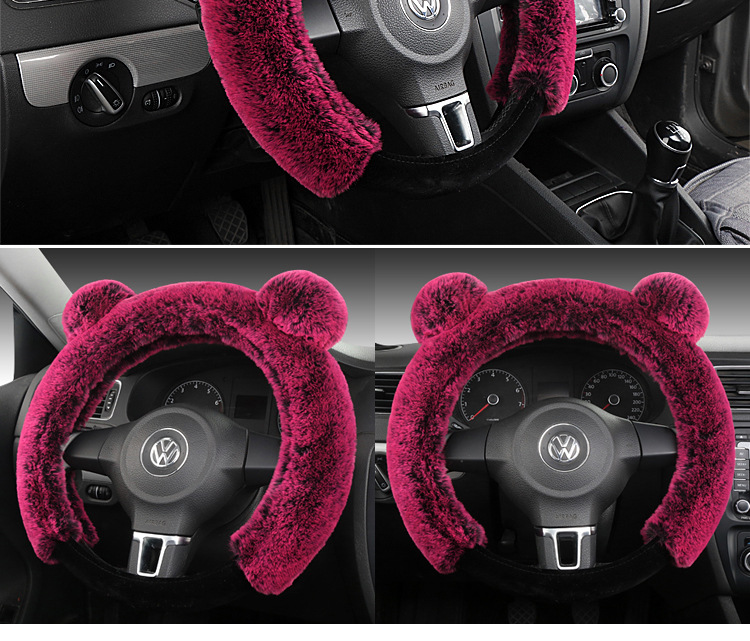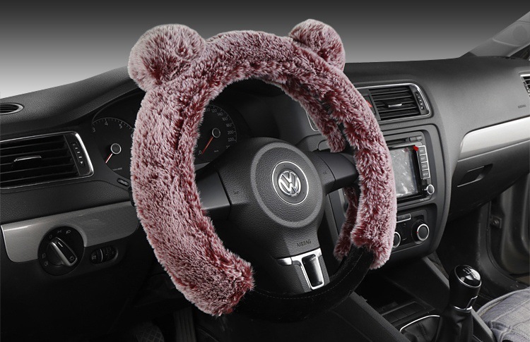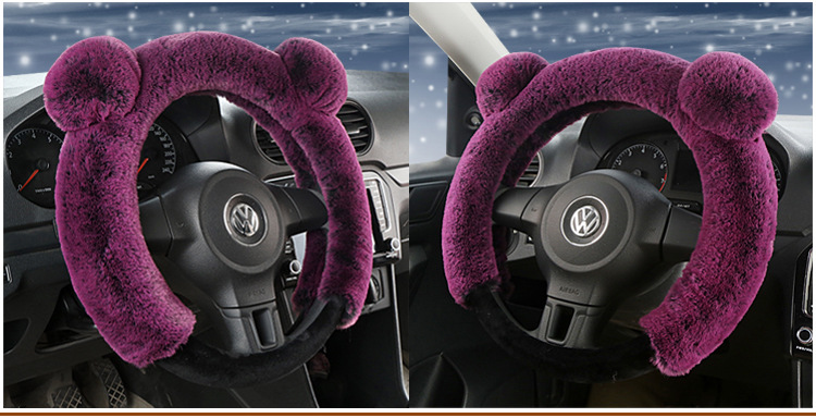 카이아이 토끼귀 모양 플러시 스티어링 휠 커버, 새로운 모조 토끼털 겨울용 따뜻한 범용 핸들 커버, 여성용 자동차 용품