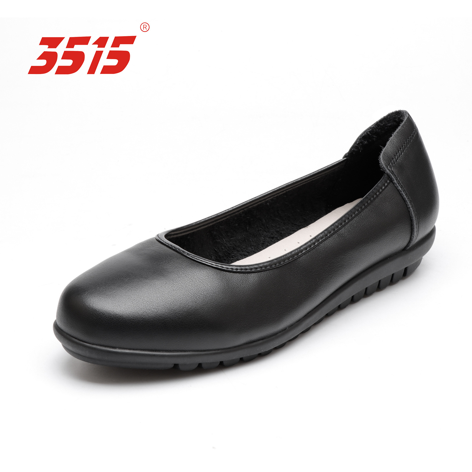 Jihua 3515 가을 모든 경기 가죽 신발 플랫 블랙 전문 작업 신발 봄 신발 여성 캐주얼 신발