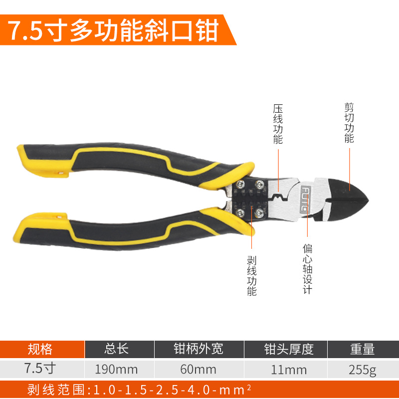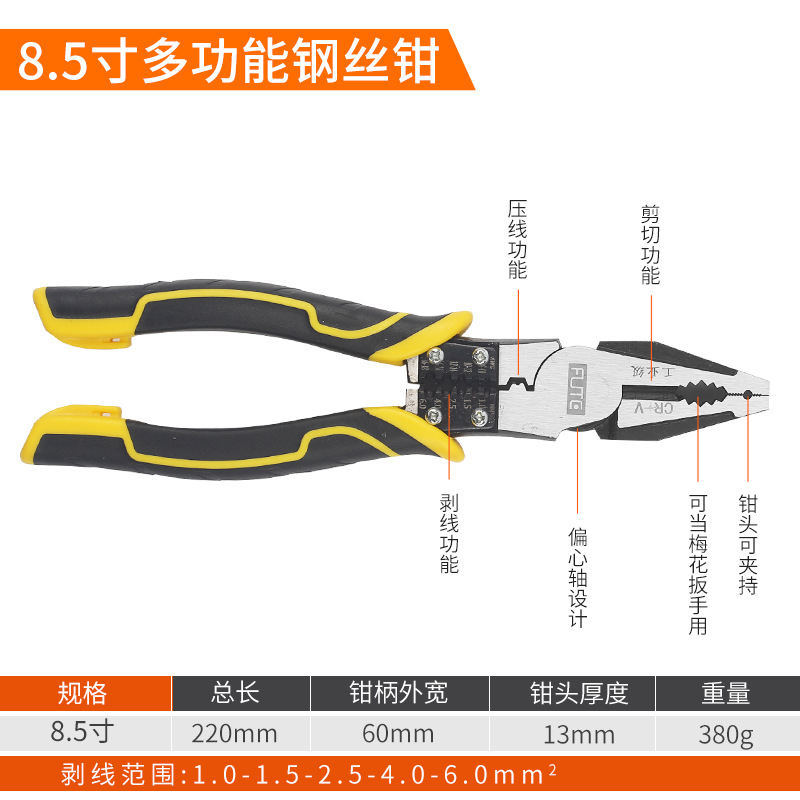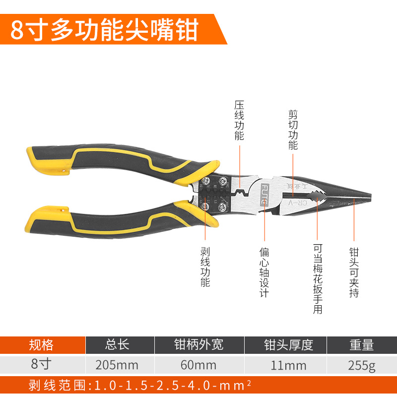 뾰족한 노즈가있는 포르테 산업용 다기능 와이어 플라이어 편심 및 노동 절약 와이어 스트리핑 및 와이어 커팅 플라이어