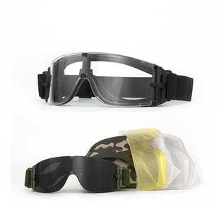 X800战术护目镜户外运动CS射击眼镜防弹护目镜军迷风镜三镜片套装