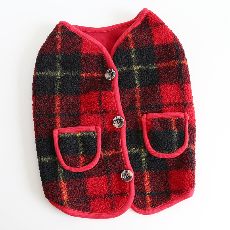 FD030 法斗红格子马甲
