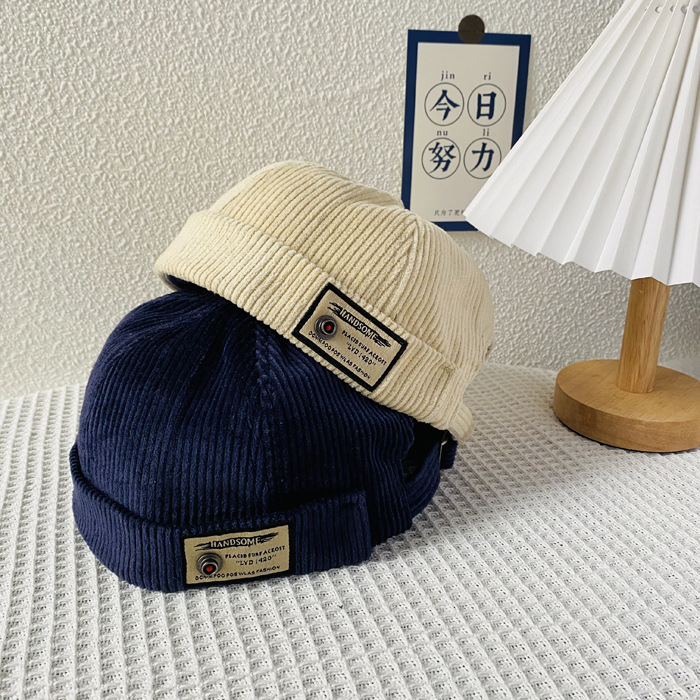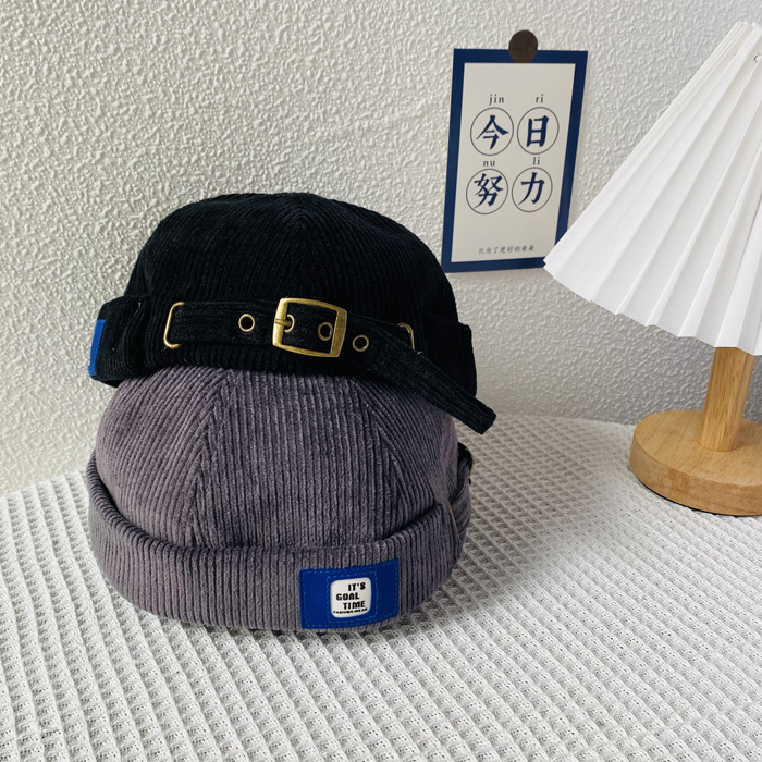 春秋男女款日系无檐灯芯绒瓜皮帽复古个性标雅痞嘻哈潮流地主帽