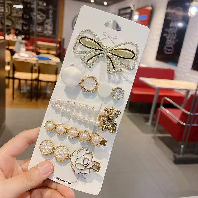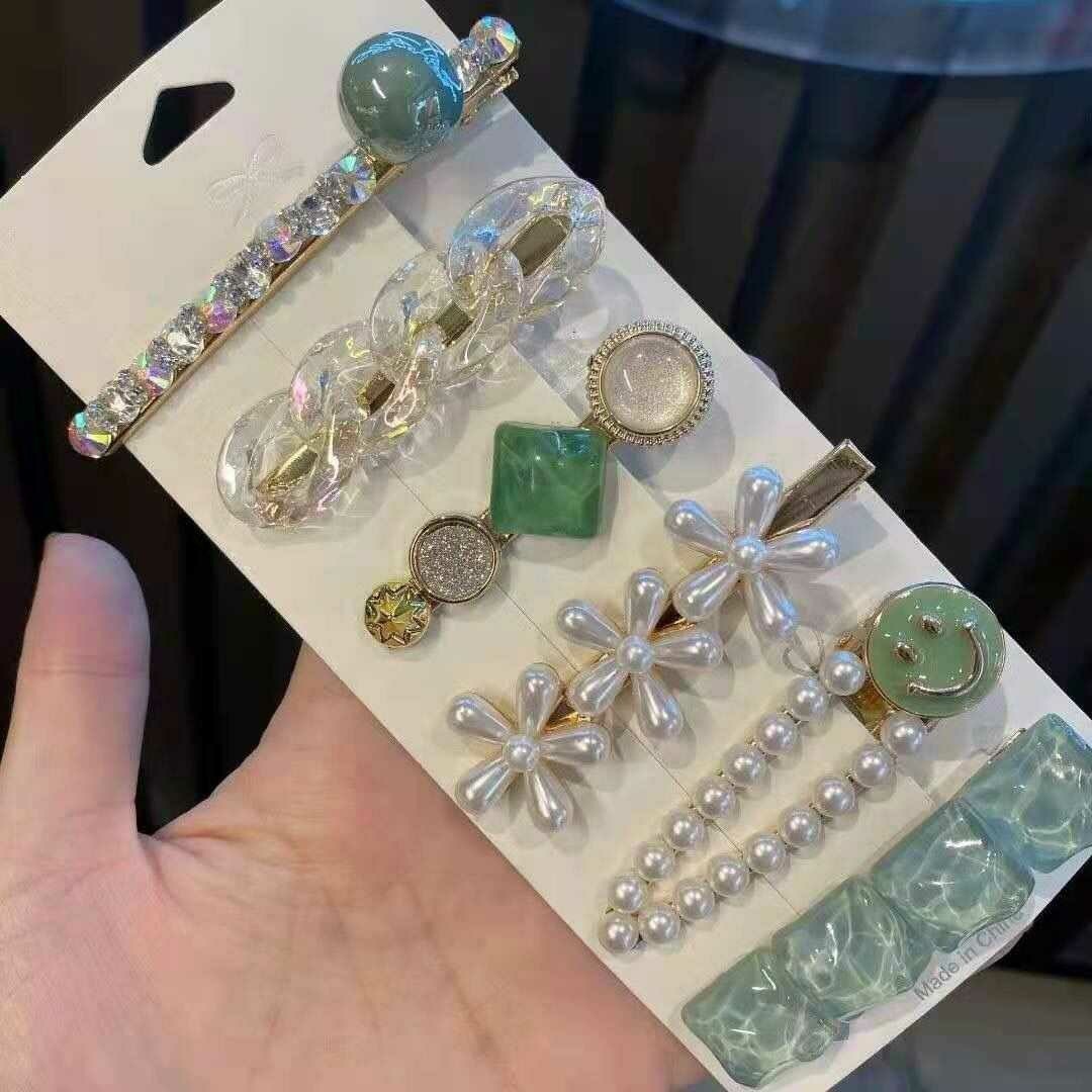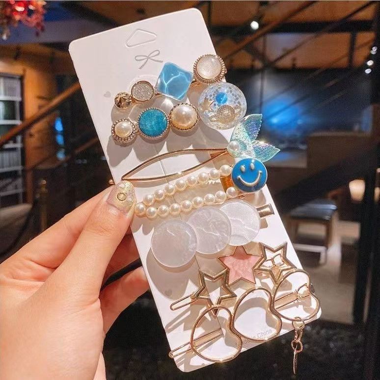 Ins 모자 신선한 달콤한 사이드 클립 인터넷 빨간 머리 액세서리 레트로 불가사리 5 피스 세트 머리핀 라인 석 가위 머리핀스토어 가기