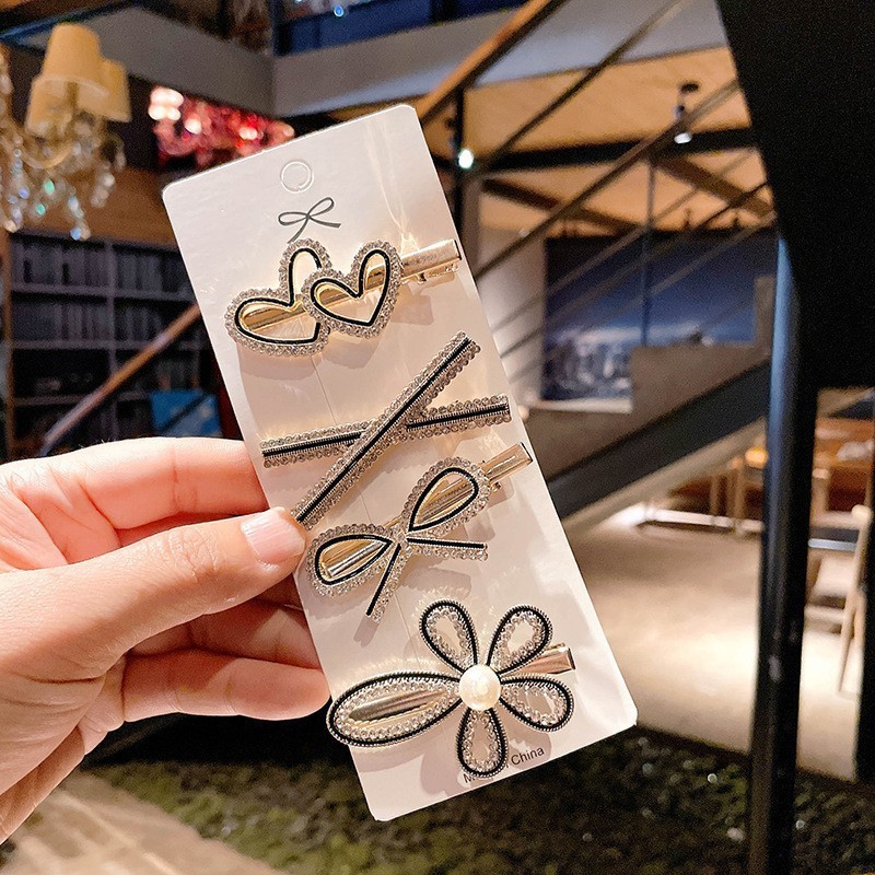 Ins 모자 신선한 달콤한 사이드 클립 인터넷 빨간 머리 액세서리 레트로 불가사리 5 피스 세트 머리핀 라인 석 가위 머리핀