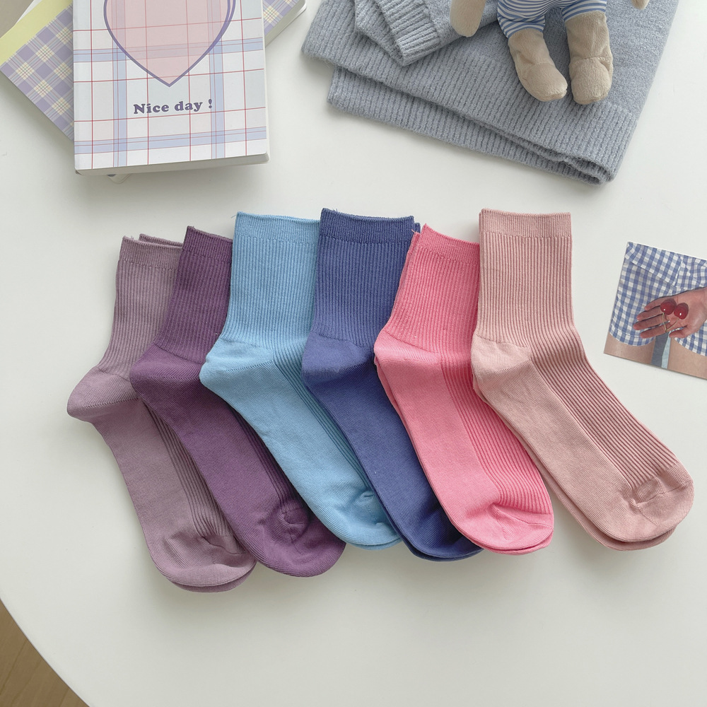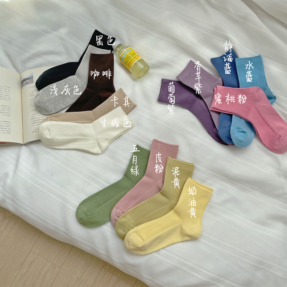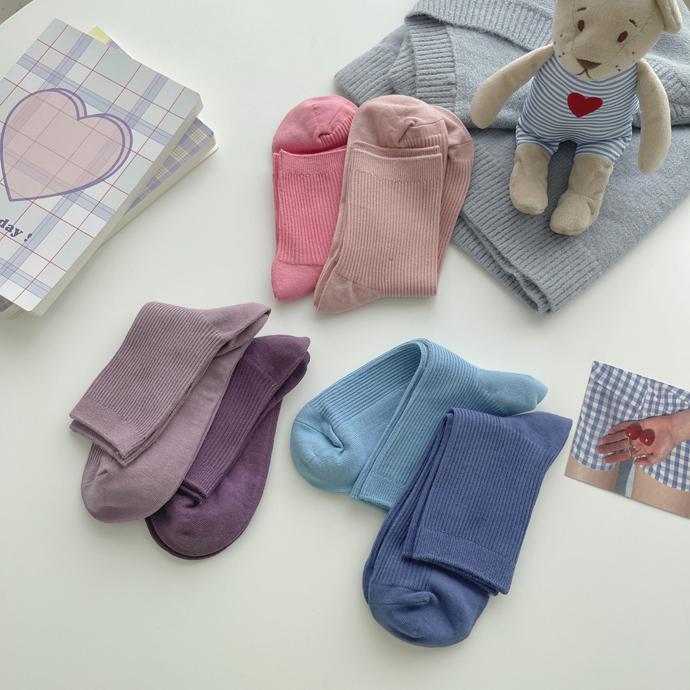 단색 양말 어린이 가을과 겨울 양말 흰면 한국 더미 양말 Zhuji 도매스토어 가기