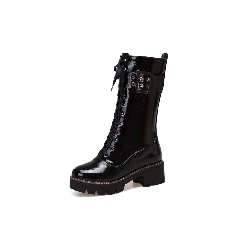 소원 아마존 크로스 국경 대외 무역 여성의 가죽 부츠 2021 새로운 둥근 머리 두꺼운 바닥 두꺼운 뒤꿈치 마틴 부츠 여성 43