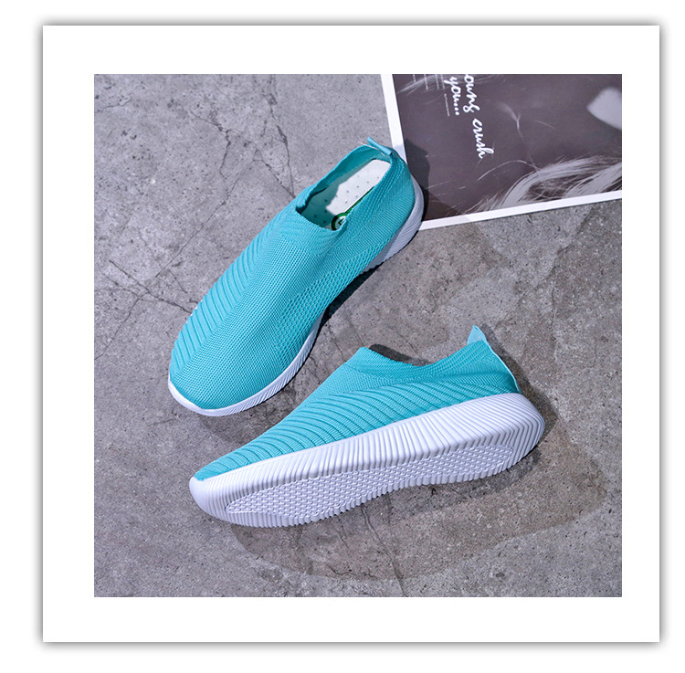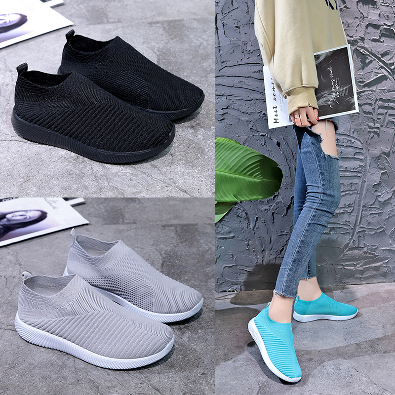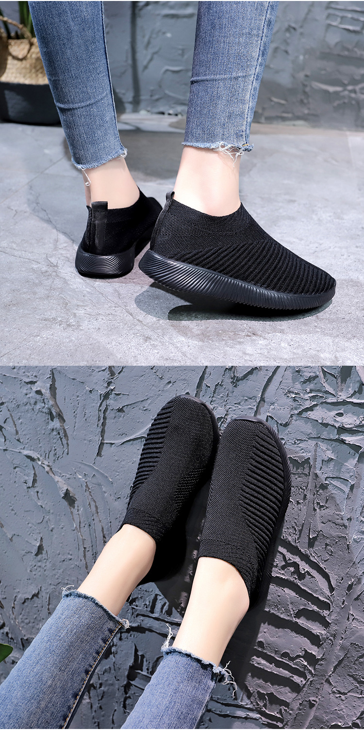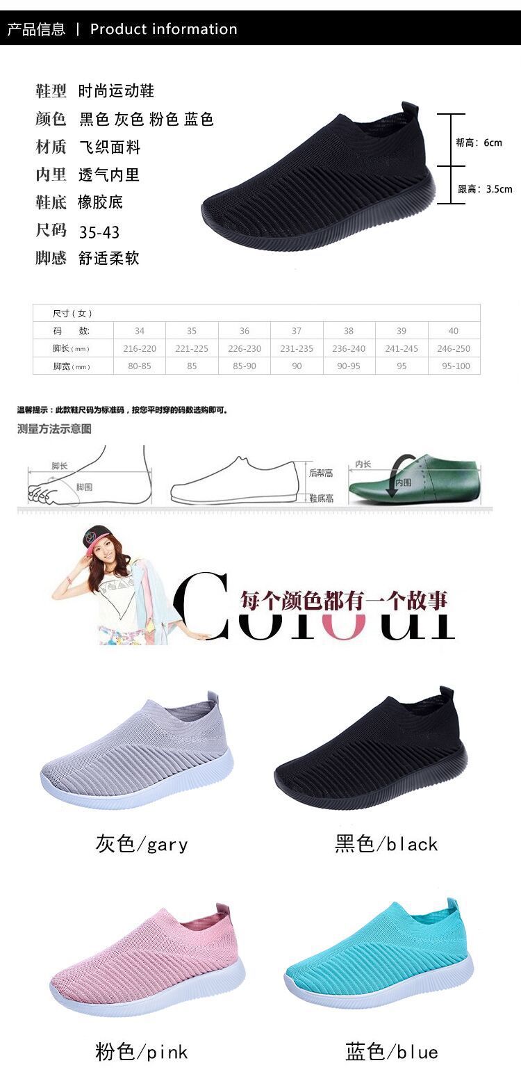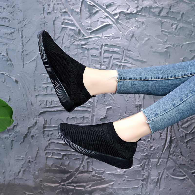 크로스 보더 플러스 사이즈 패션 플라이 짠 캐주얼 신발 여성 신발 새로운 스타일 통기성 스포츠 런닝 신발 낮은 탑 양말 신발 Wish