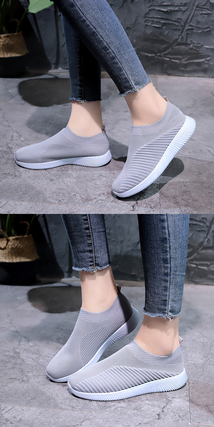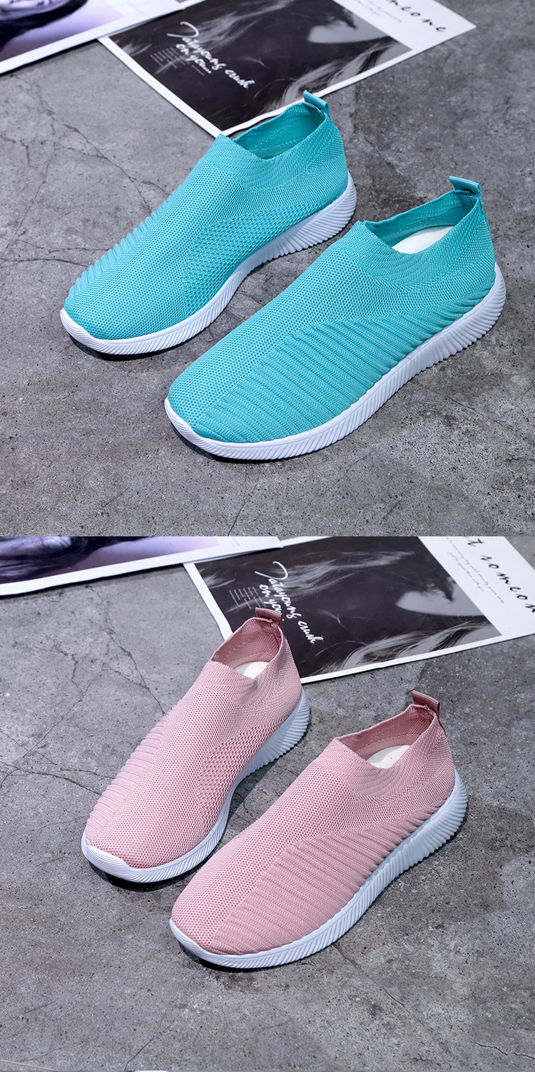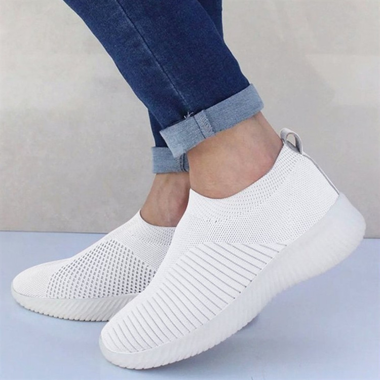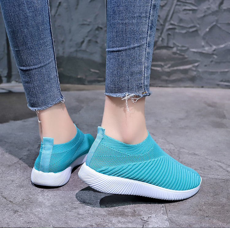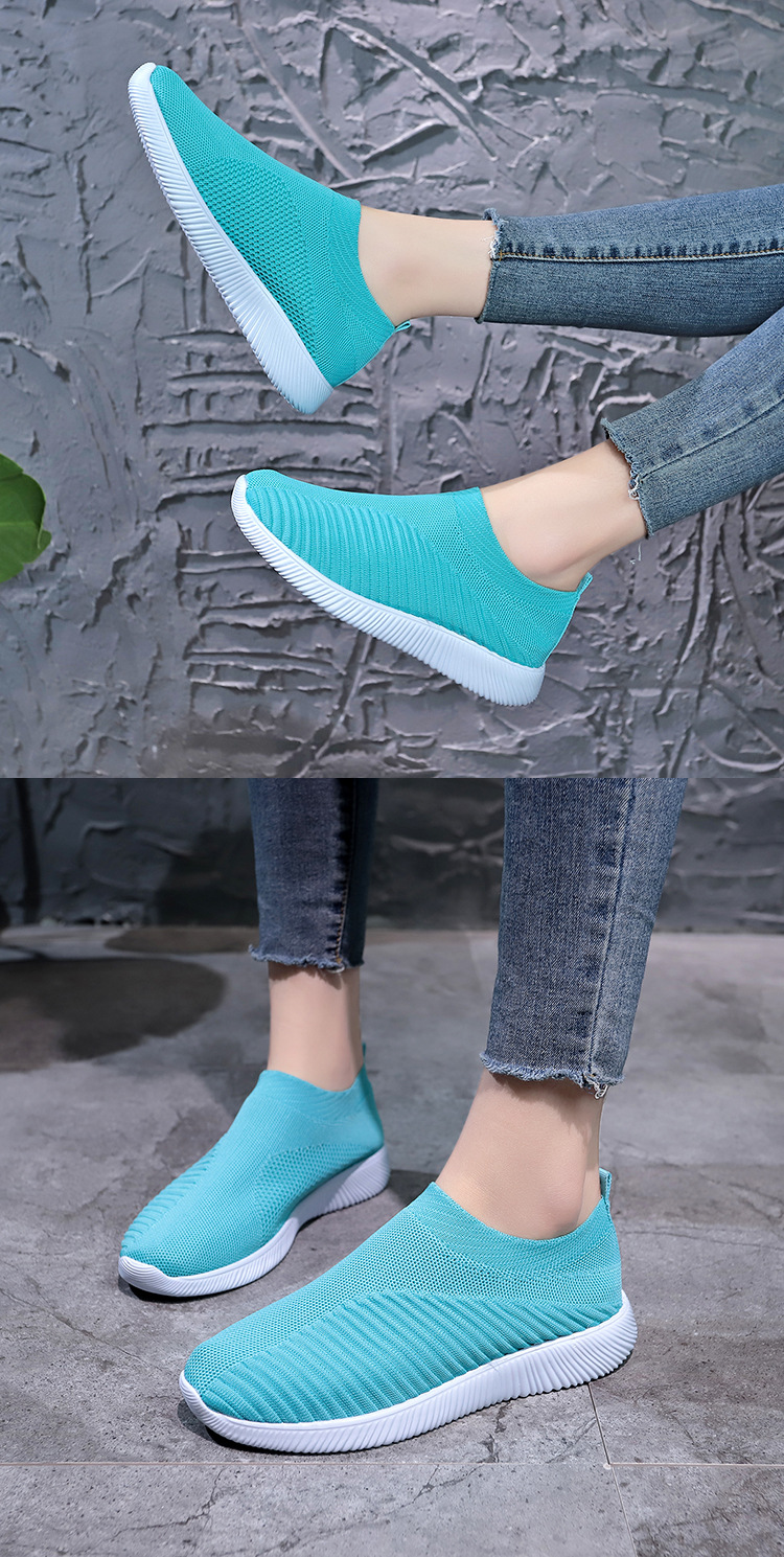 크로스 보더 플러스 사이즈 패션 플라이 짠 캐주얼 신발 여성 신발 새로운 스타일 통기성 스포츠 런닝 신발 낮은 탑 양말 신발 Wish