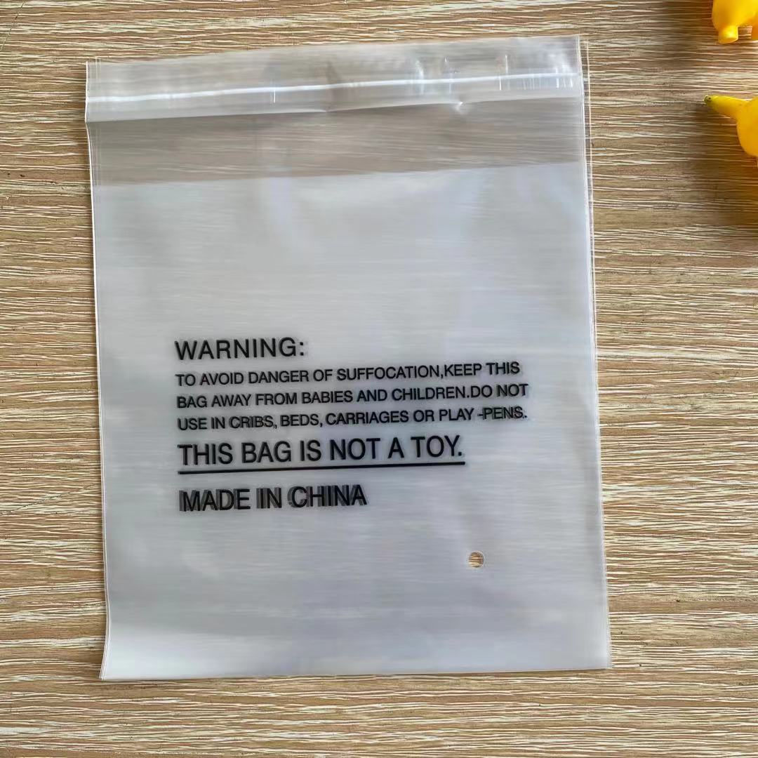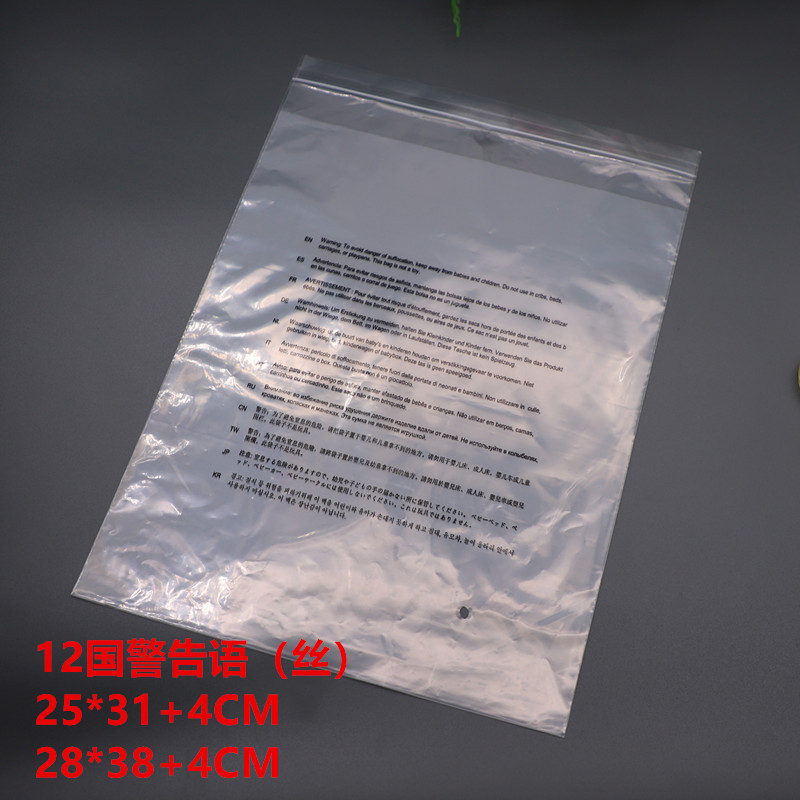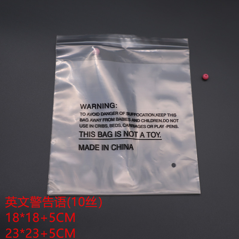 工艺:不干胶封口,一面英文印刷警告语,有一组气孔对穿