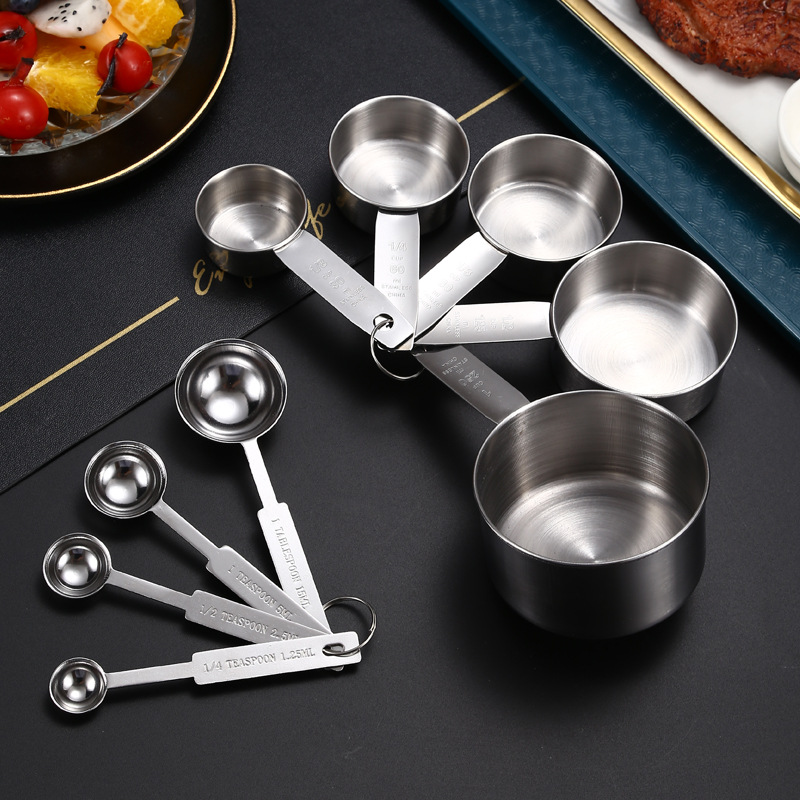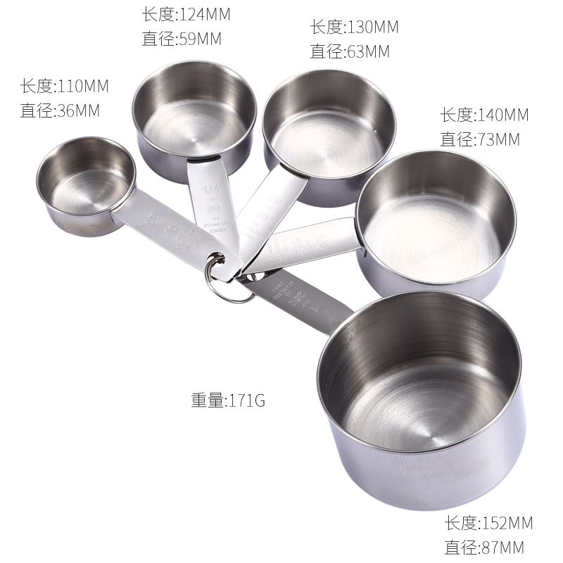 재고 제조 업체 스테인레스 스틸 측정 컵 측정 스푼 세트 크로스 국경 졸업 베이킹 도구 5 조각 세트 측정 스푼 커피 스푼스토어 가기