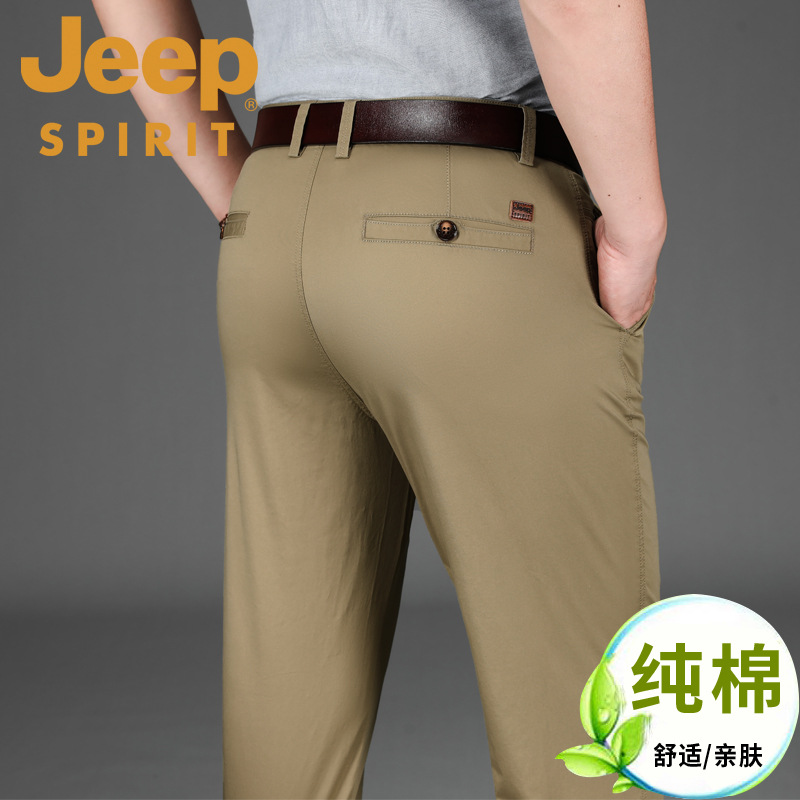 JEEP SPIRIT 봄과 여름 얇은 남성 캐주얼 바지 비즈니스 플러스 사이즈 느슨한 직선 탄성 캐주얼 바지스토어 가기