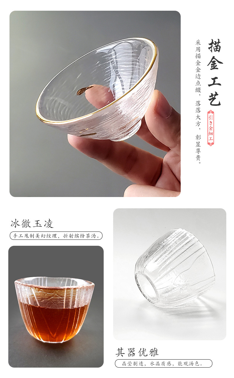 공장 직접 창작 일본식 금 시음 컵 유리 전통 공예 쿵후 차 세트 도매스토어 가기
