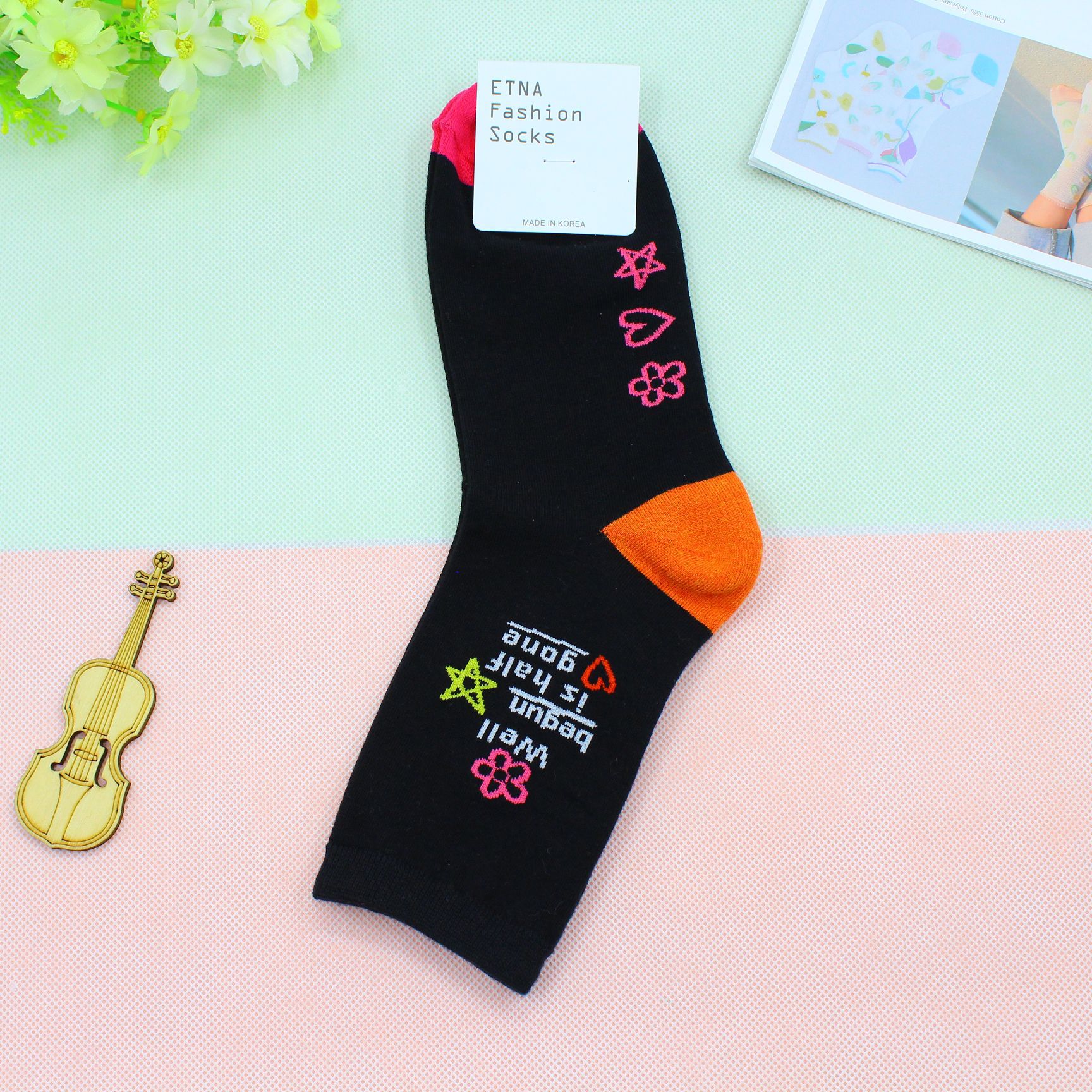 한국 동대문 가을 새로운 여성의 중간 길이 양말 개인 편지 스마일 스트리트 면 양말스토어 가기