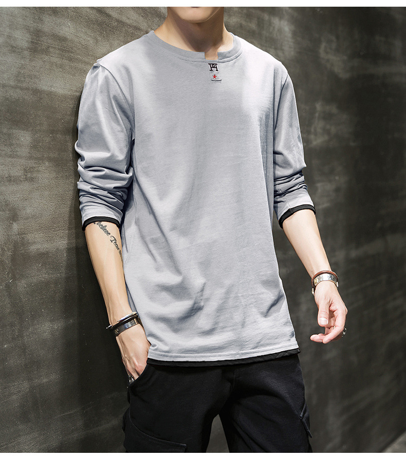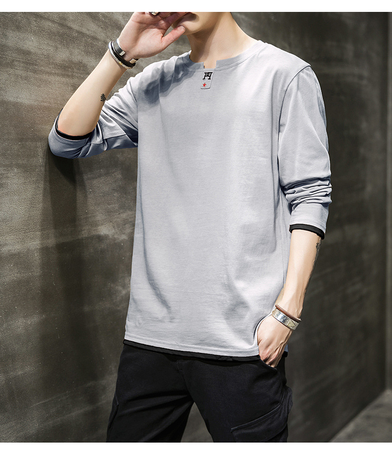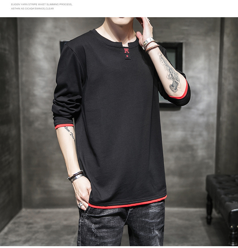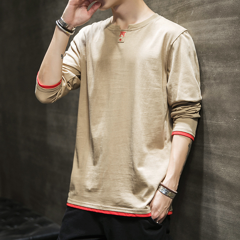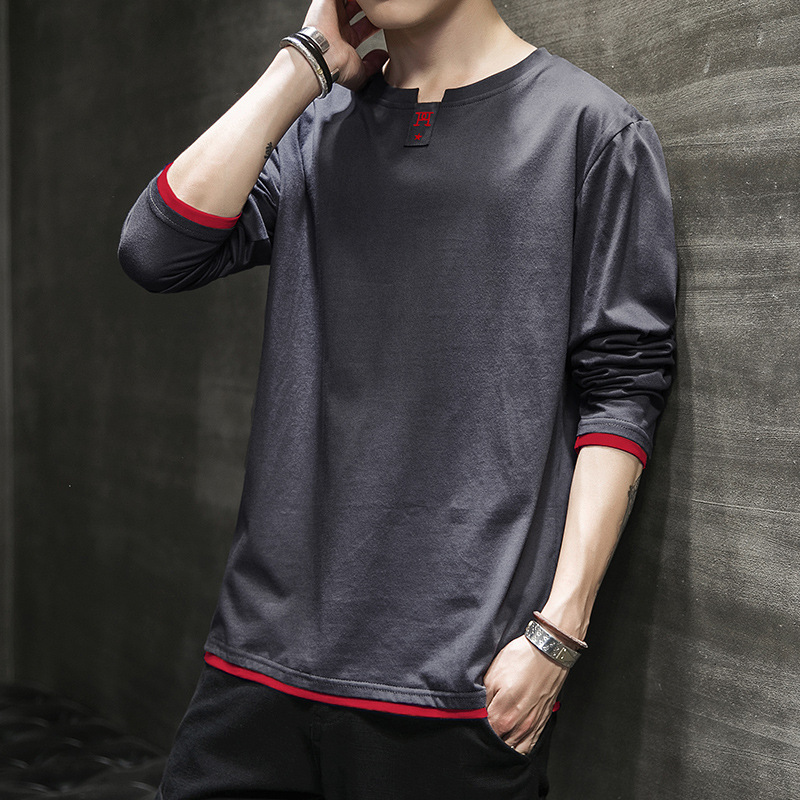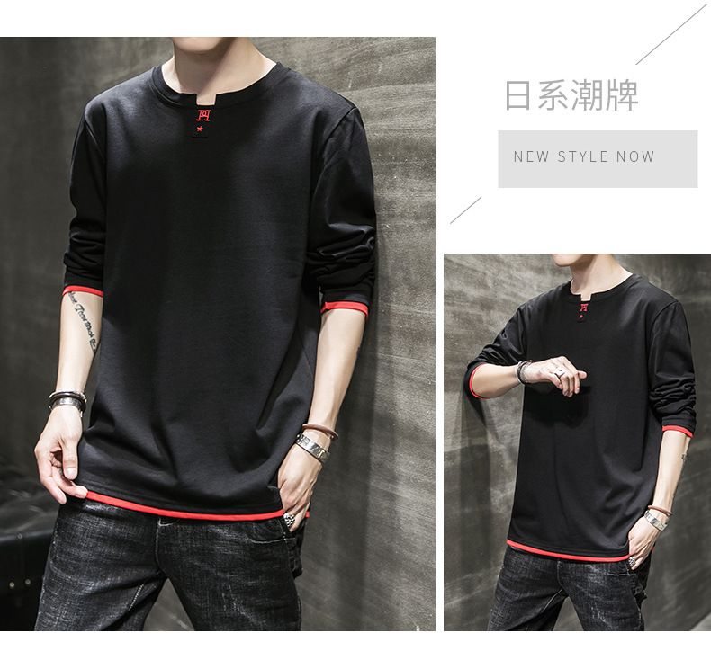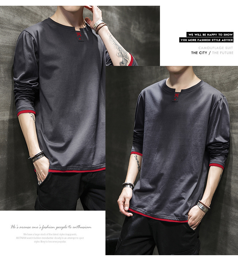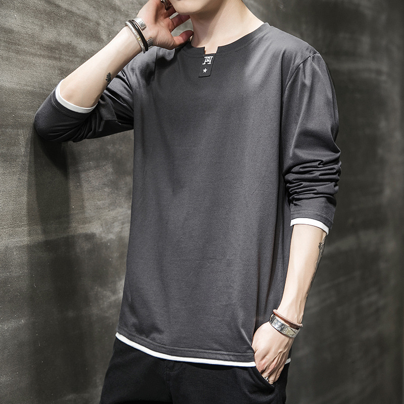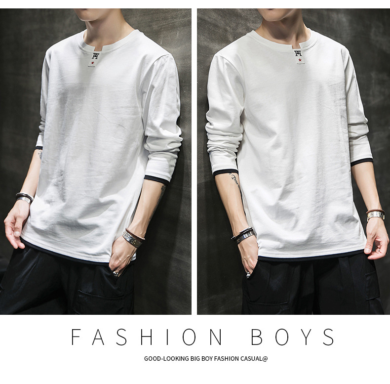 2023 봄과 가을 새로운 남성용 한국식 긴팔 티셔츠 유행 느슨한 Instagram 인기 브랜드 탑 의류 남성베이스 셔츠스토어 가기
