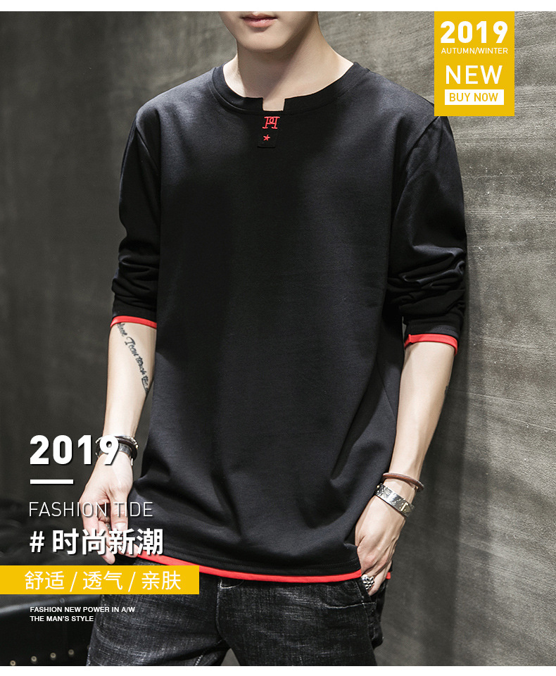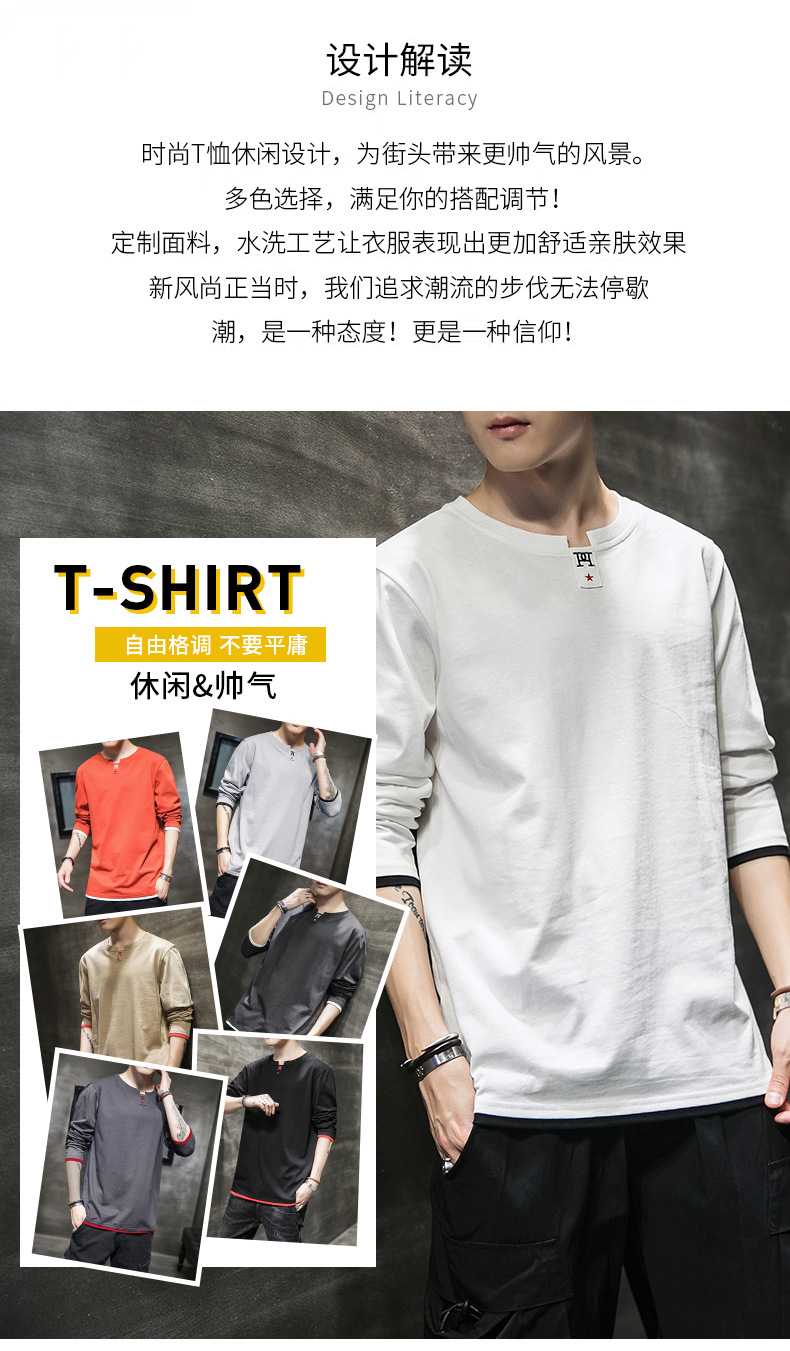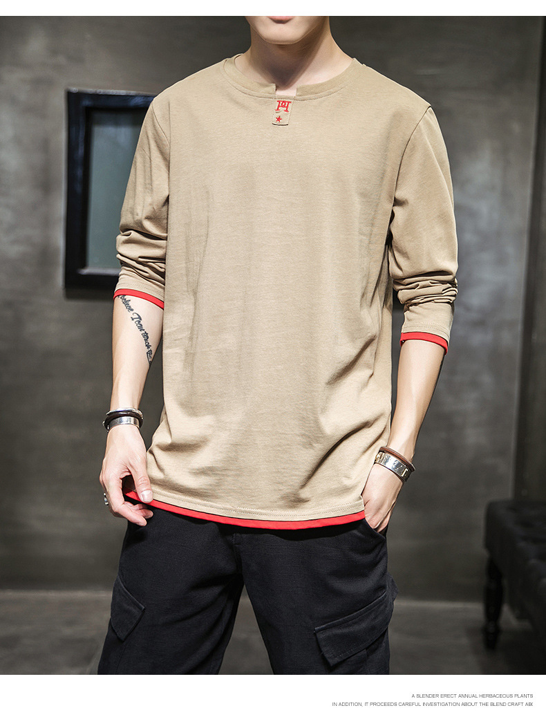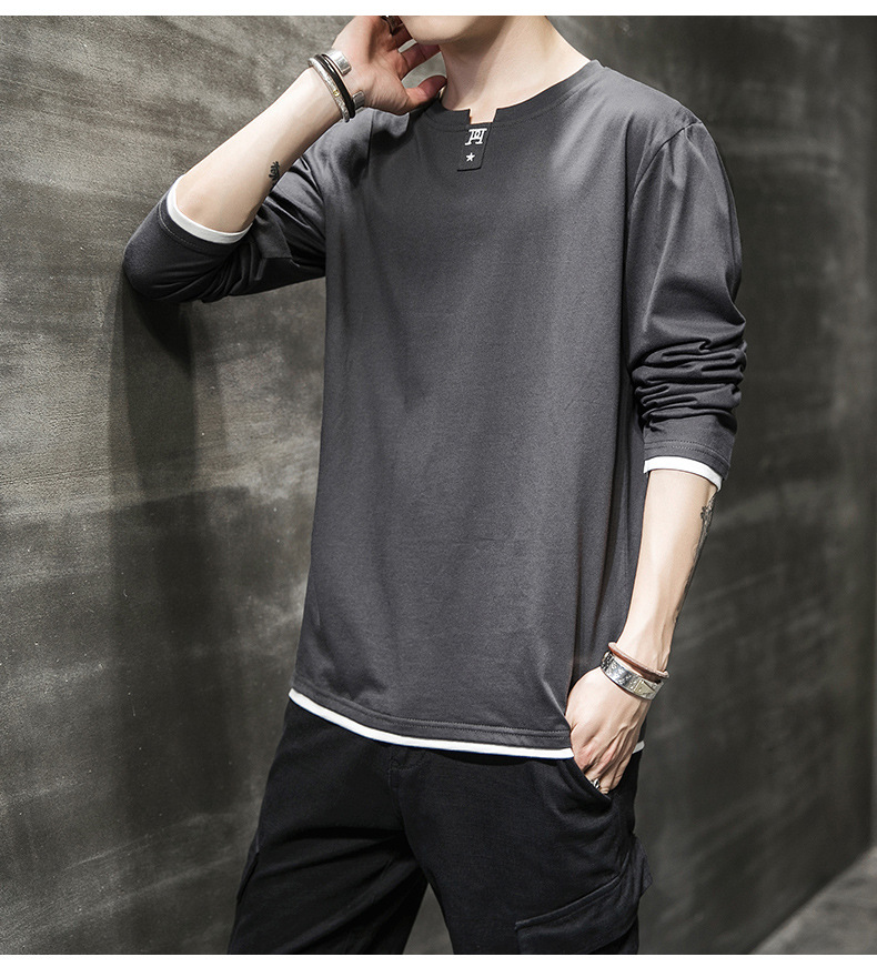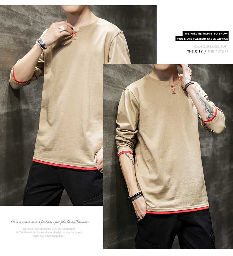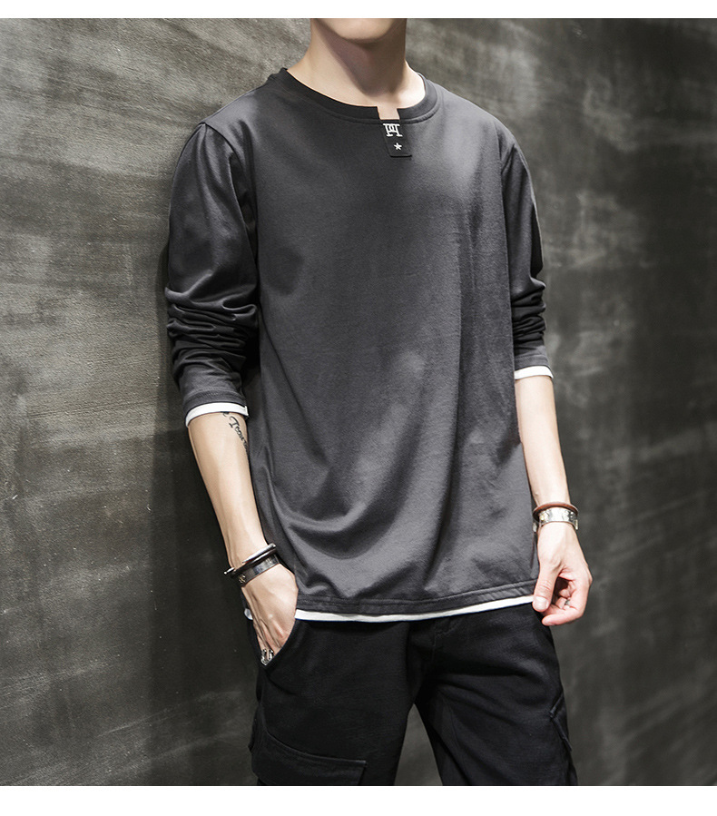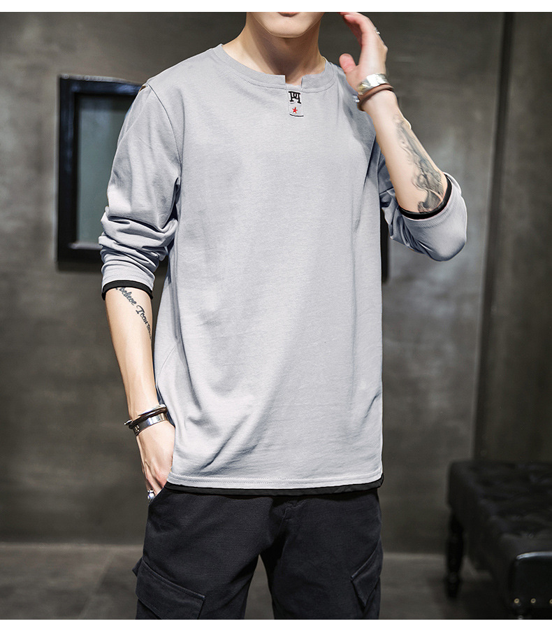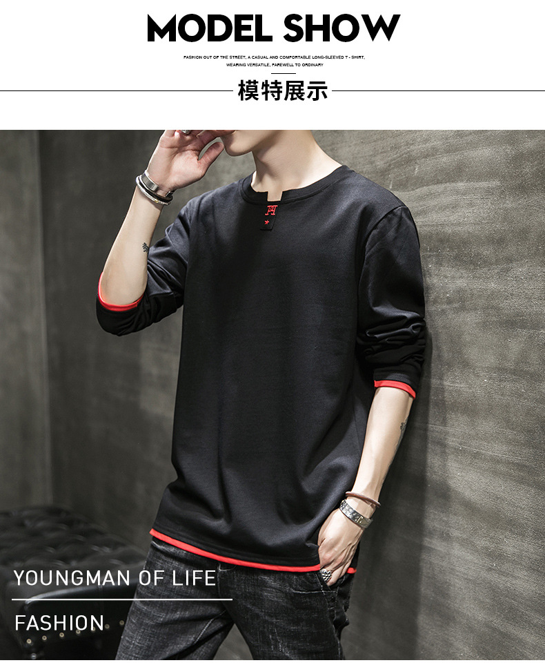 2023 봄과 가을 새로운 남성용 한국식 긴팔 티셔츠 유행 느슨한 Instagram 인기 브랜드 탑 의류 남성베이스 셔츠스토어 가기
