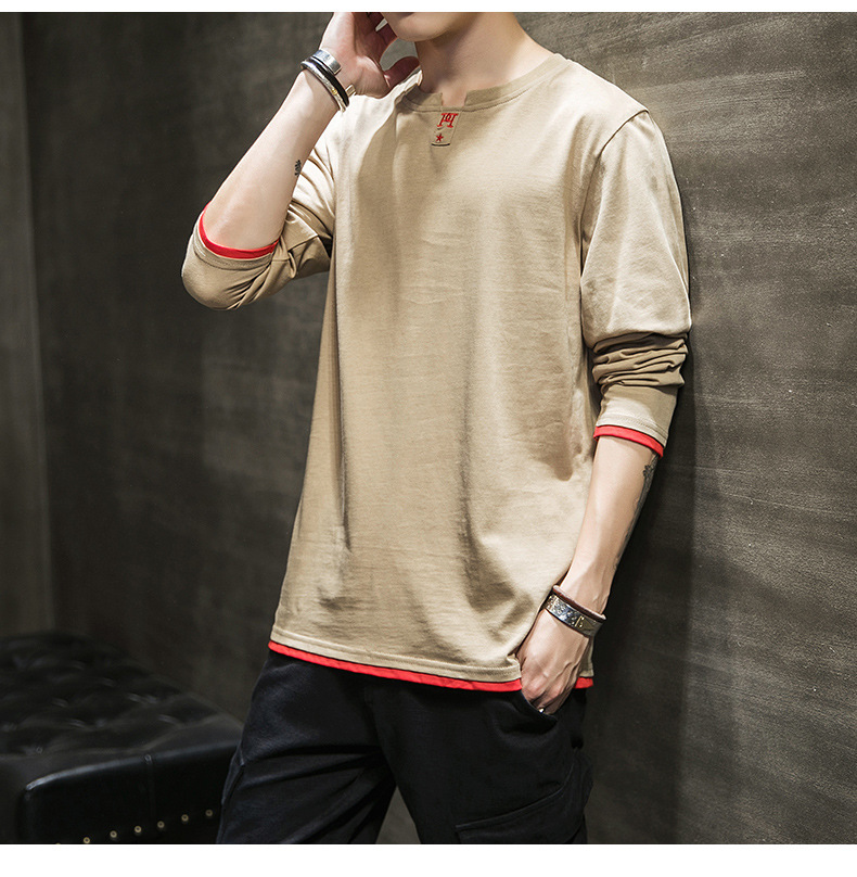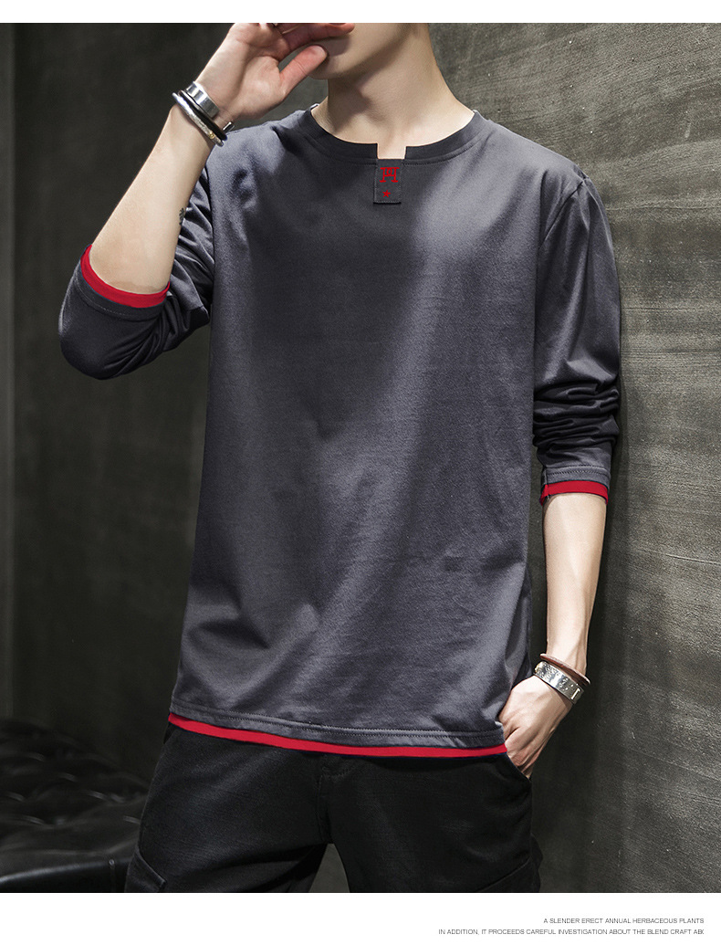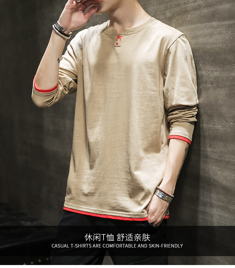 2023 봄과 가을 새로운 남성용 한국식 긴팔 티셔츠 유행 느슨한 Instagram 인기 브랜드 탑 의류 남성베이스 셔츠