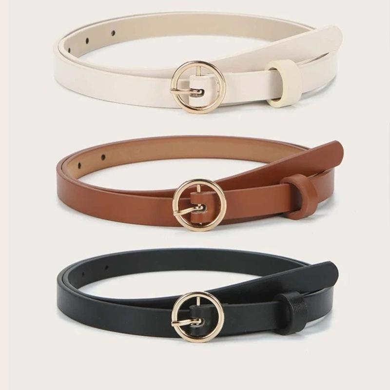 유행 한국식 벨트 원피스 장식 라운드 버클 어린이의 간단한 모든 일치 모조 가죽 얇은 벨트
