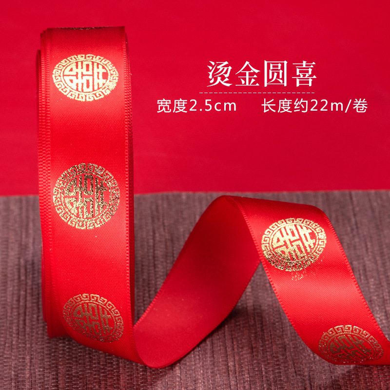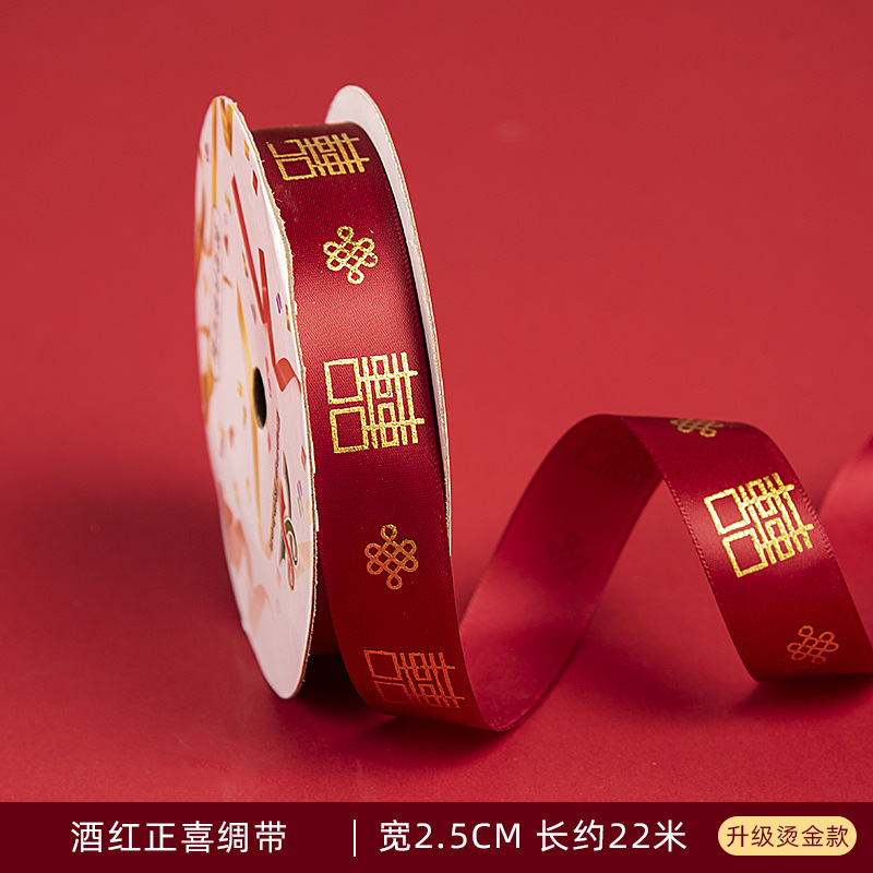 금박을 입힌 빨간 리본 결혼 선물 넥타이 스트랩 이불 리본 웨딩 지참금 리본 활 꽃