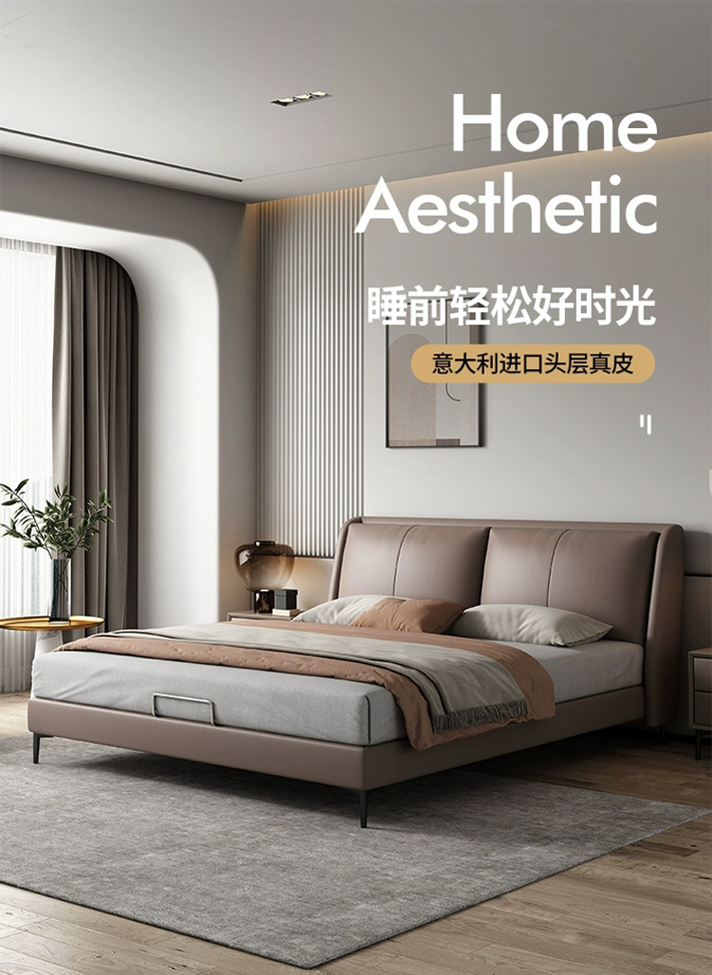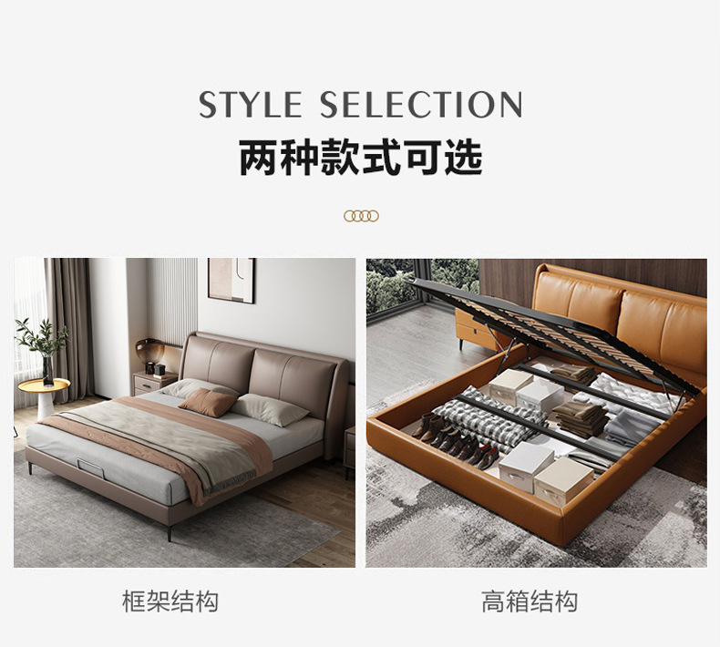 가죽 침대 가죽 아트 침대 북유럽 웨딩 침대 빛 럭셔리 모던 심플 소프트 백 침대 1.8 m 더블 마스터 침실 수납 가죽 침대스토어 가기