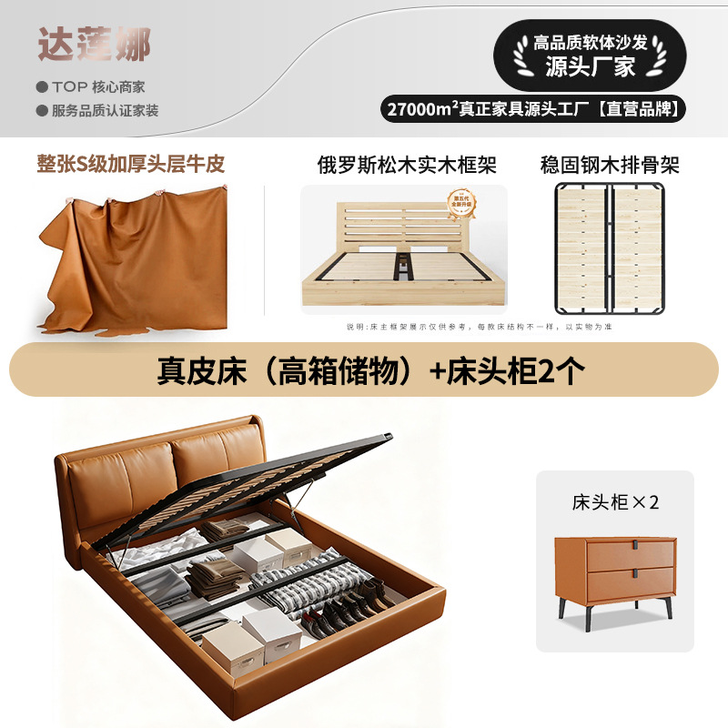 • 가죽 침대 (높은 상자 보관) + 라텍스 매트리스 DL30B + 침대 옆 탁자 2