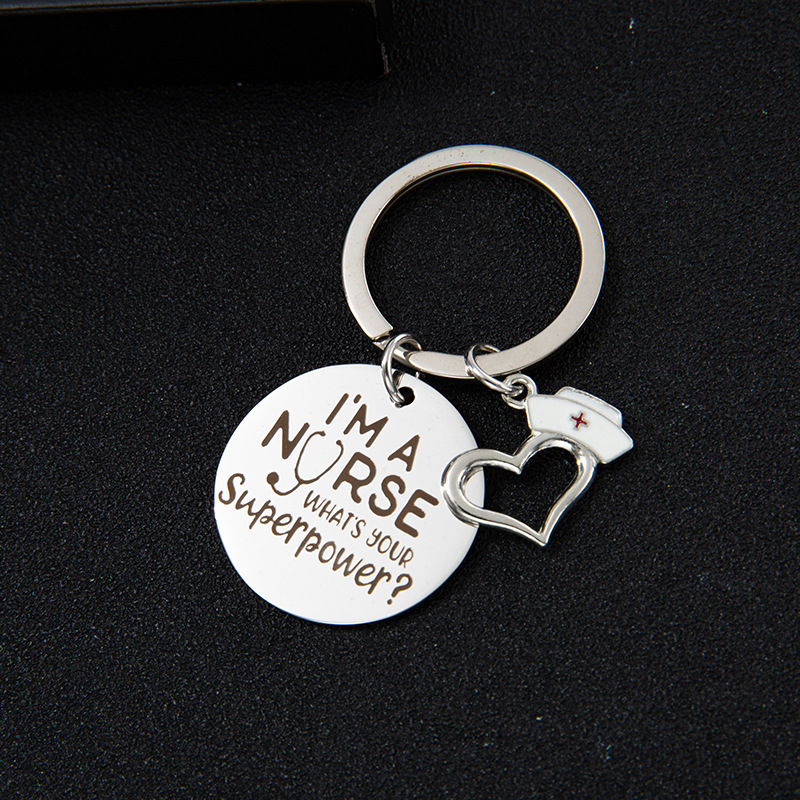 의사를 보내는 유럽과 미국의 스테인레스 스틸 키 행업 간호사 캡 간호사의 날 로고 작은 선물 키 체인 금속 글자