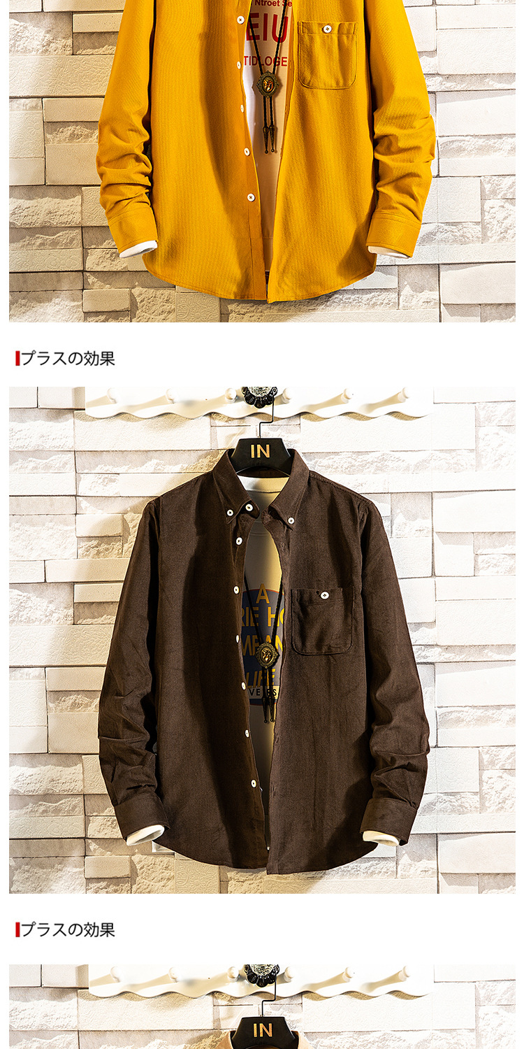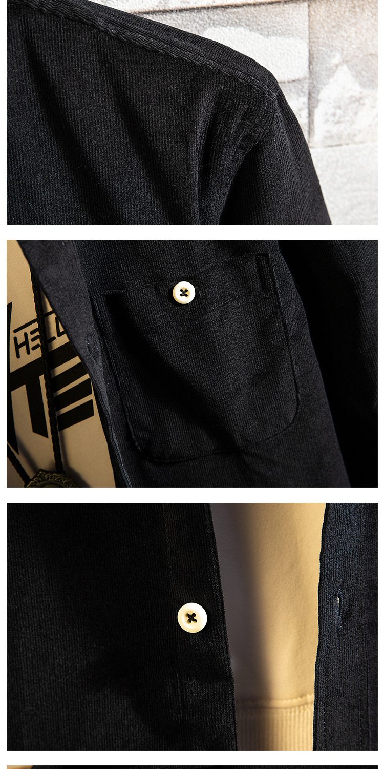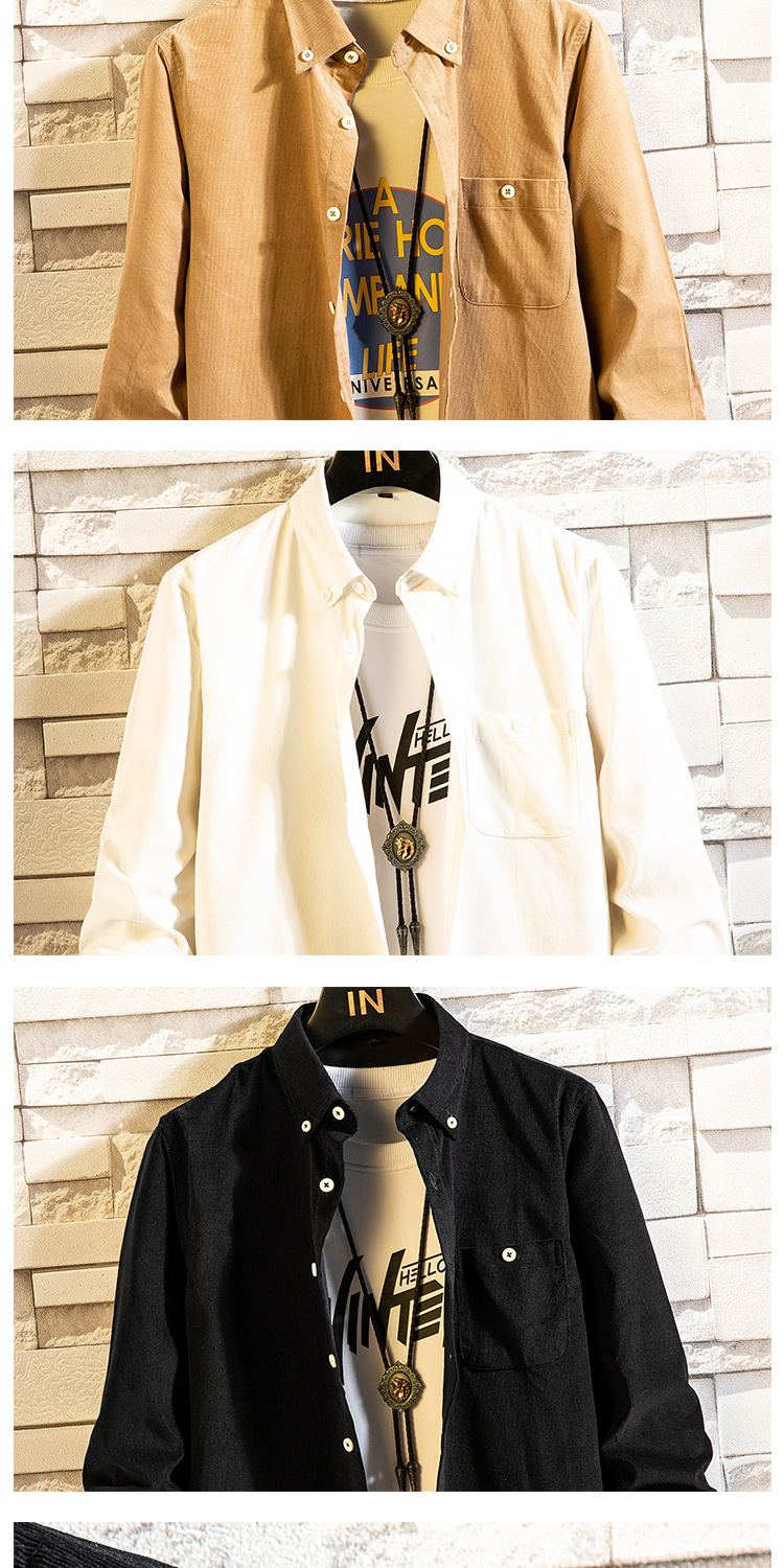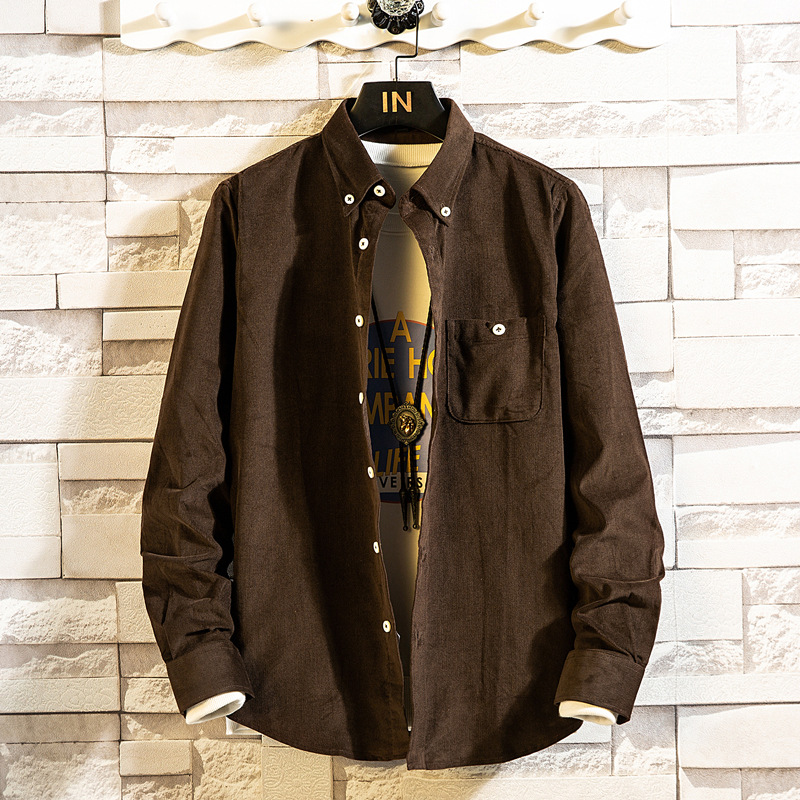 도매 남성 코듀로이 긴팔 셔츠 단색 심플 한국 슬림핏 셔츠 남성 한국 슬림핏 남성 탑스토어 가기